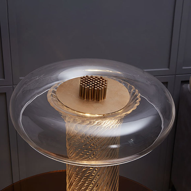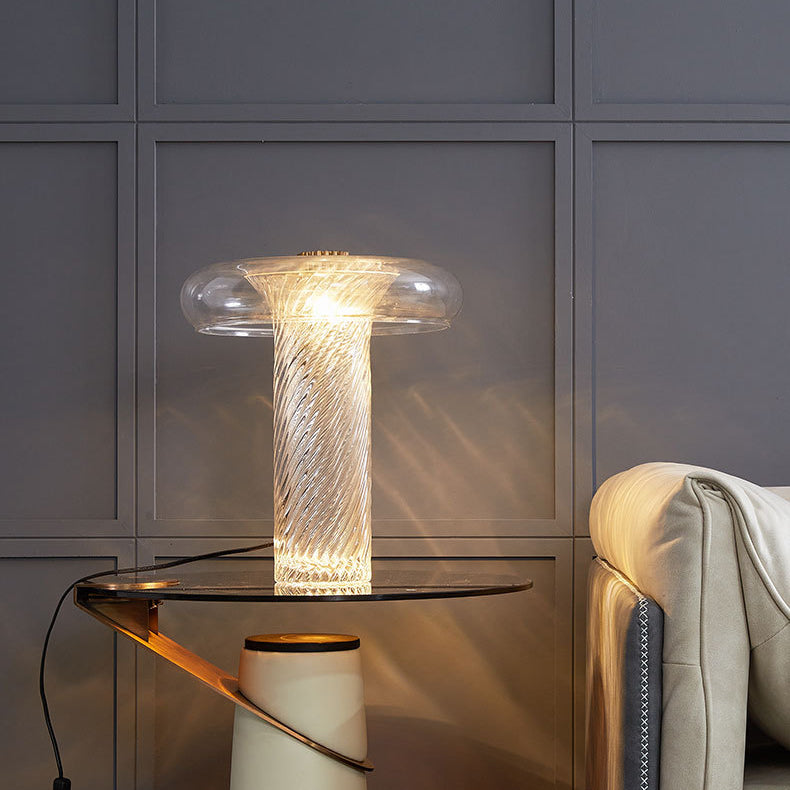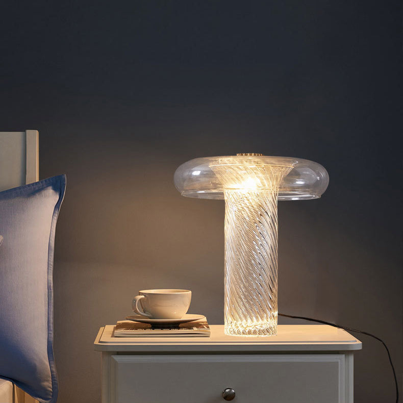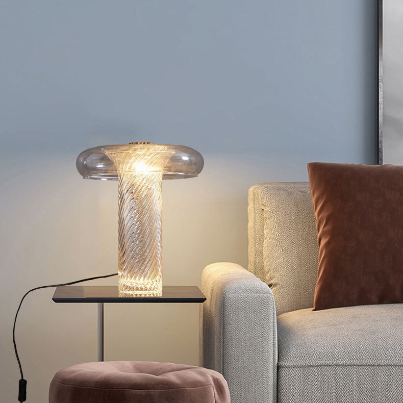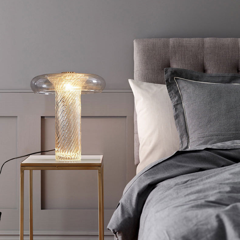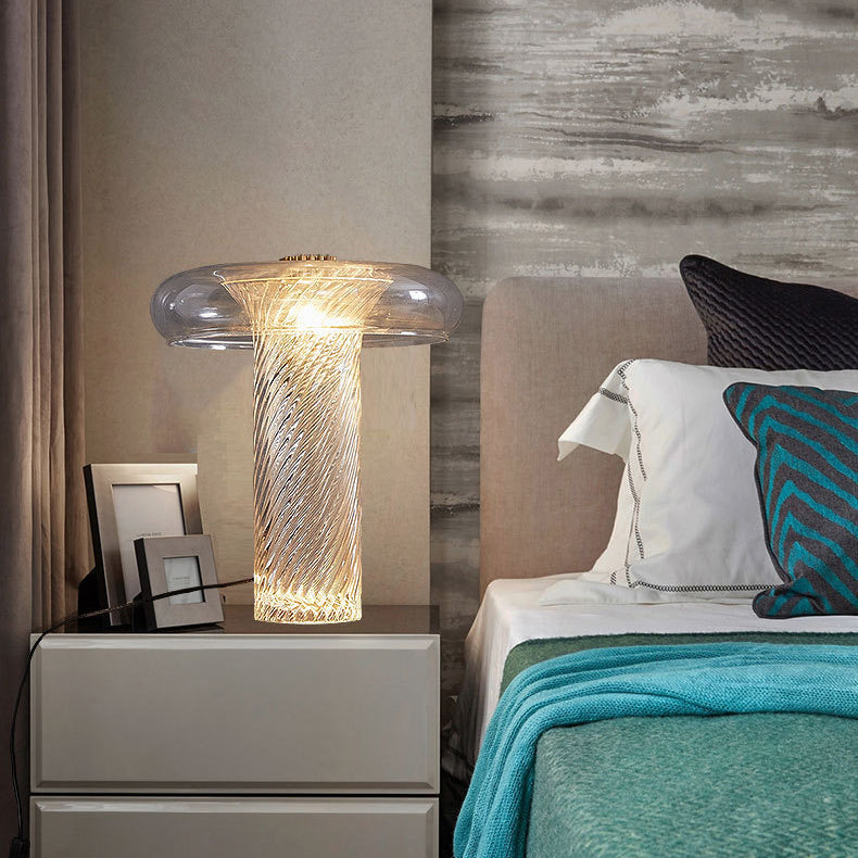 Contemporary Scandinavian Cylinder Circle Curved Stripe Iron Glass LED Table Lamp For Bedroom