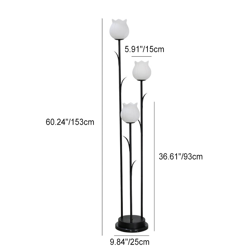 Contemporary Scandinavian Cylinder Flower Iron Glass 3-Light Standing Floor Lamp For Living Room