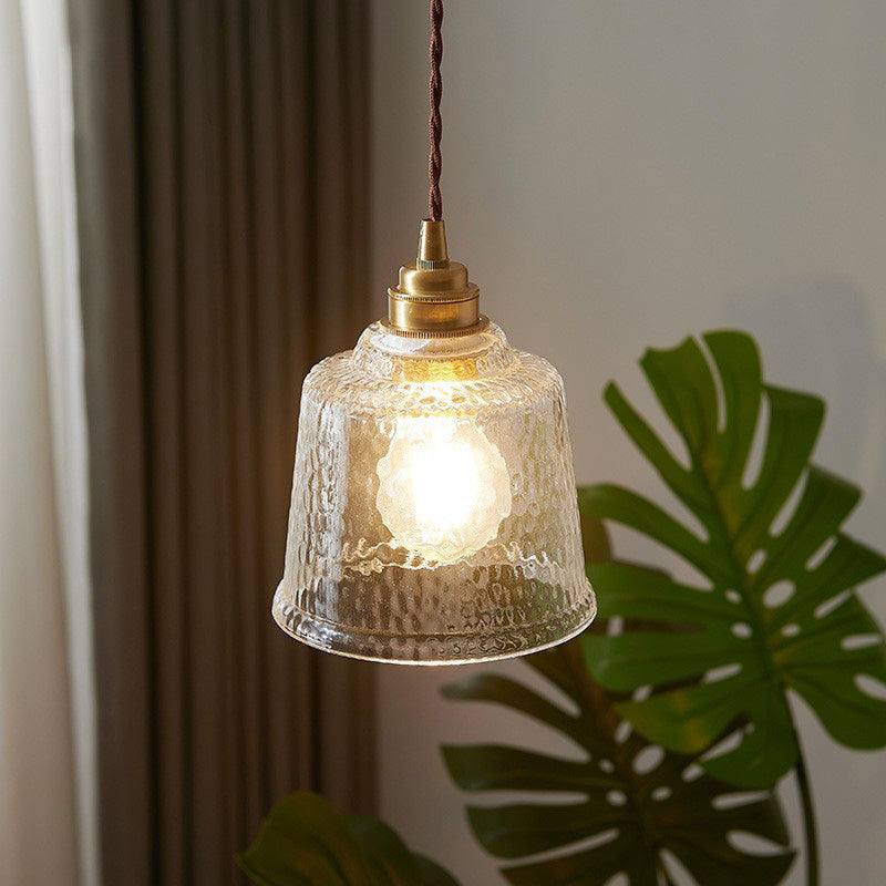 Contemporary Scandinavian Cylinder Glass Copper 1-Light Pendant Light For Dining Room