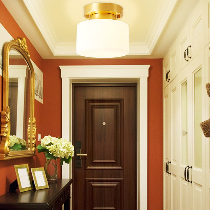 Contemporary Scandinavian Cylinder Round Glass Copper 1-Light Semi-Flush Mount Ceiling Light For Bedroom