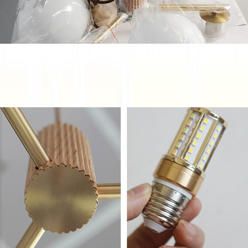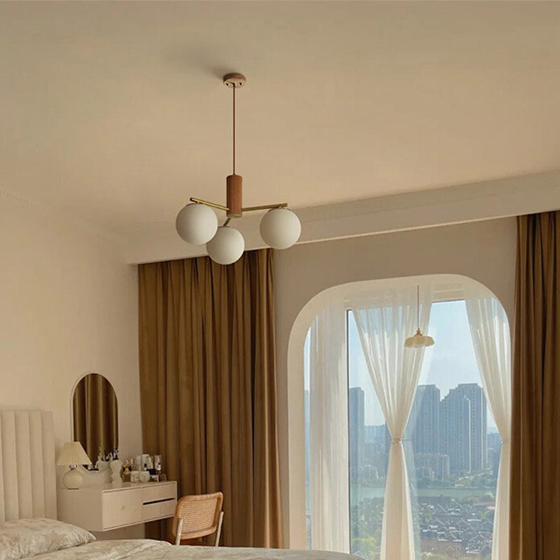 Contemporary Scandinavian Cylinder Spherical Branch Copper Wood Glass 3/5 Chandelier For Living Room