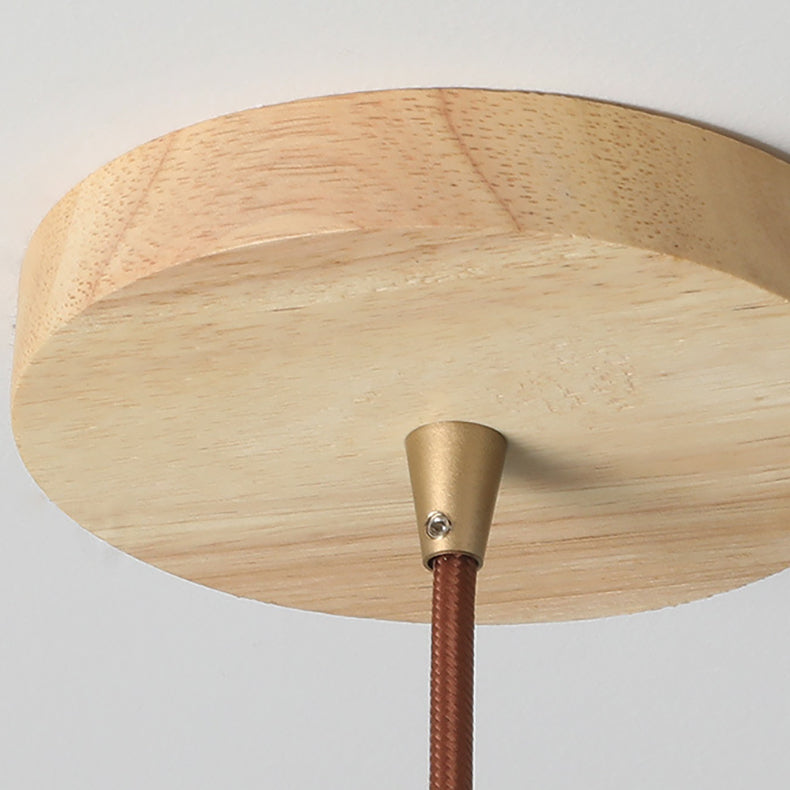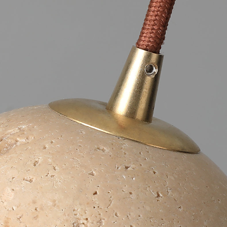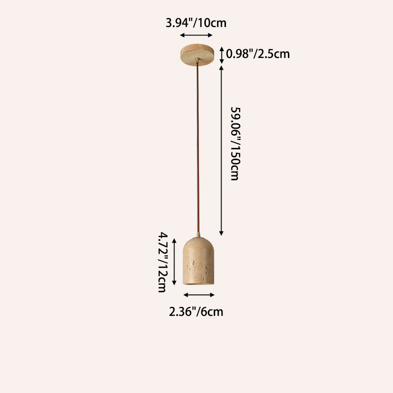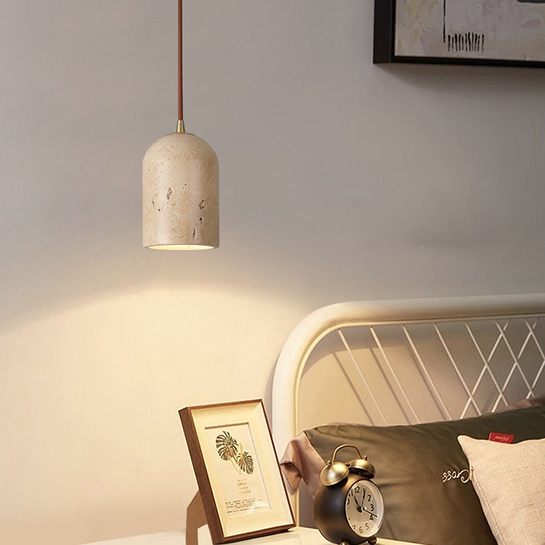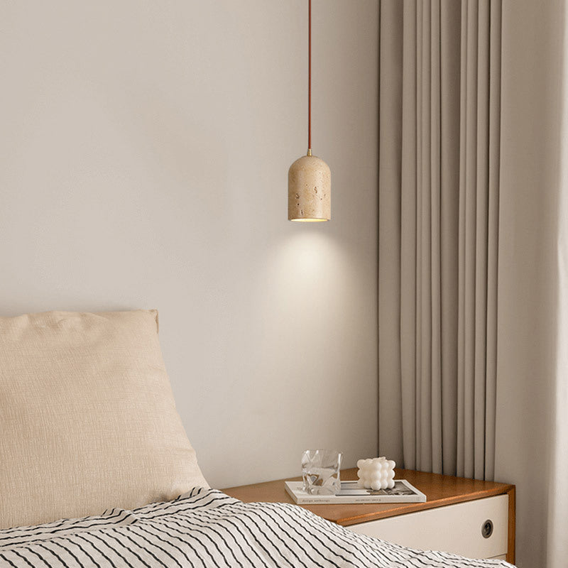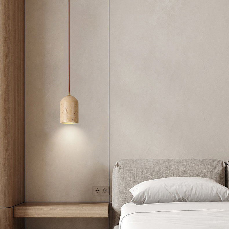 Contemporary Scandinavian Cylindrical Half Orb Travertine Oak 1-Light Pendant Light For Bedroom