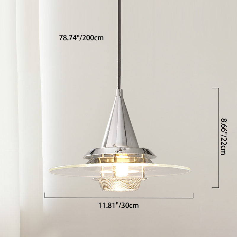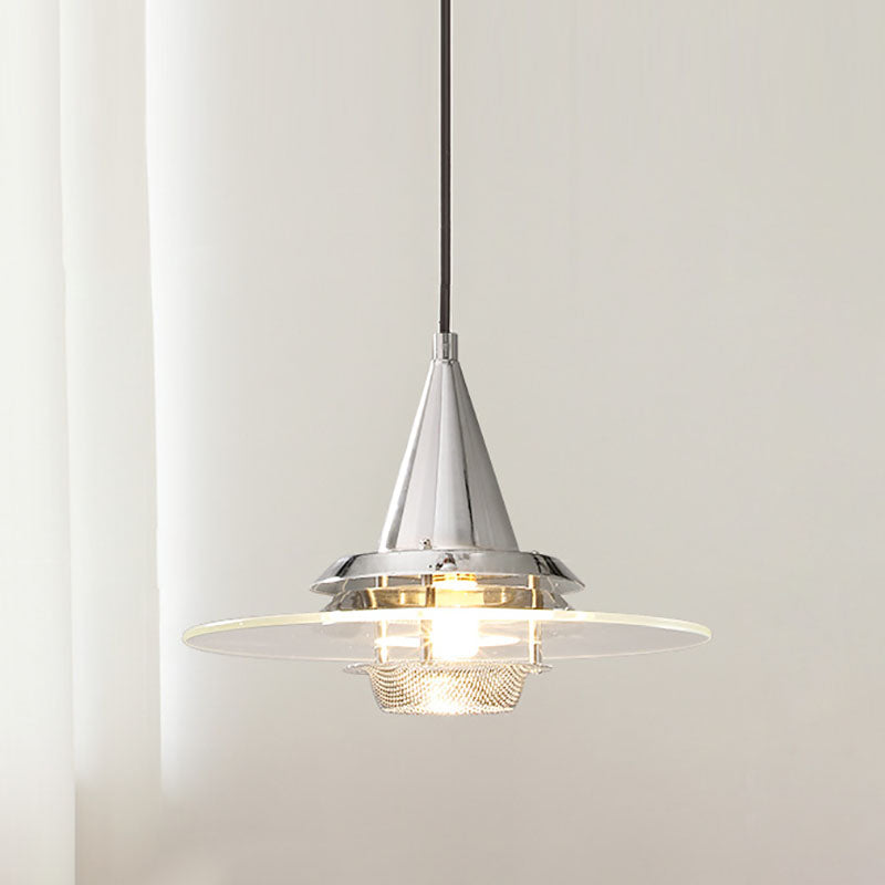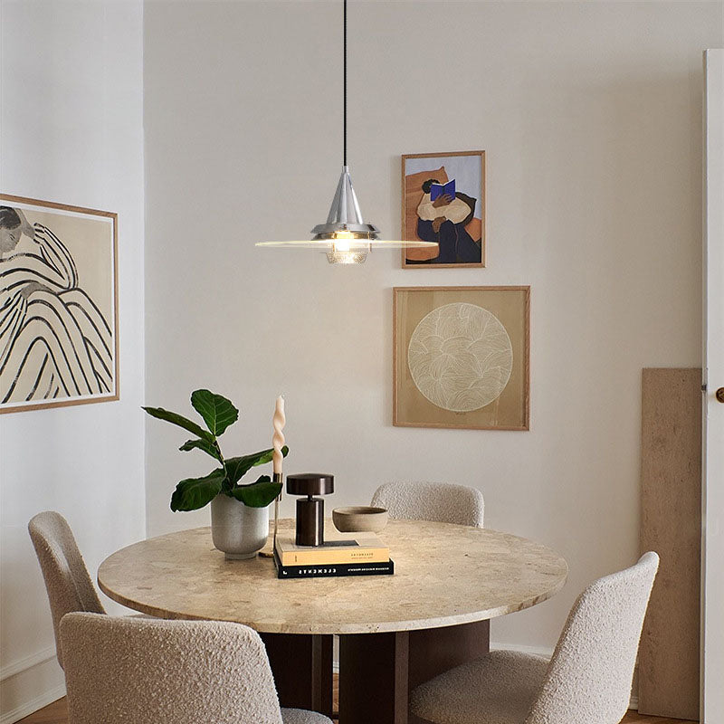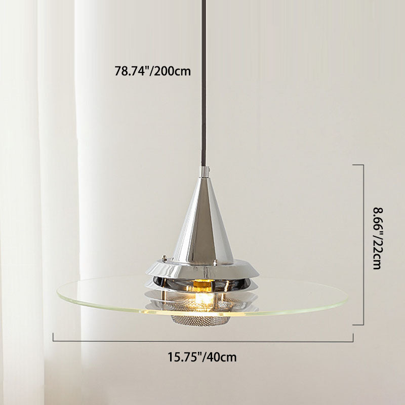Contemporary Scandinavian Disc Tapered Iron Glass 1-Light Pendant Light For Bedroom