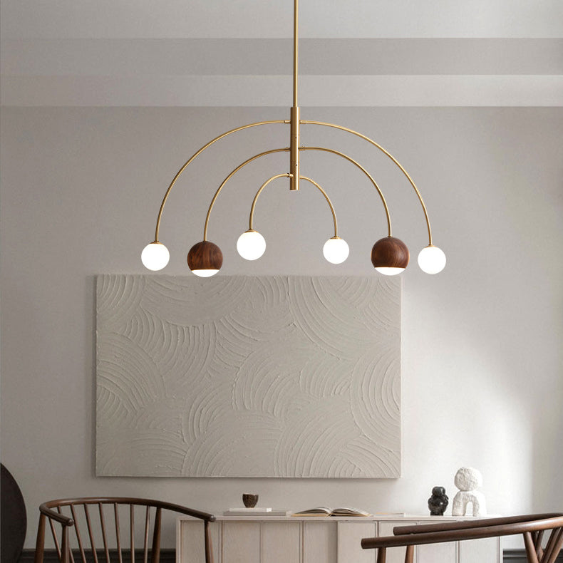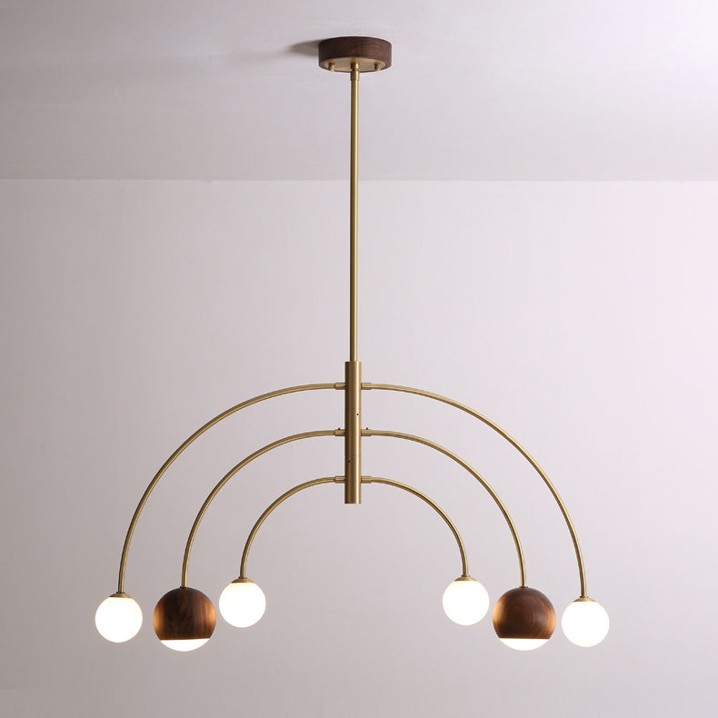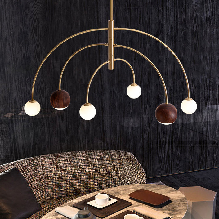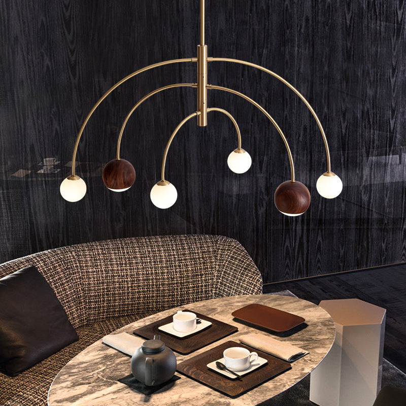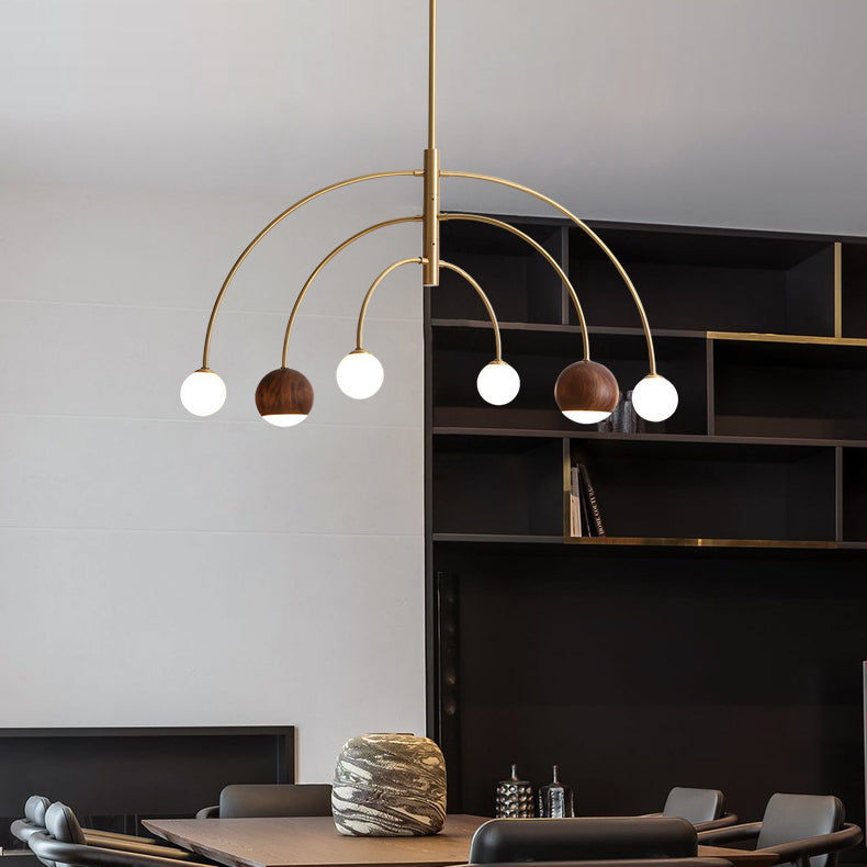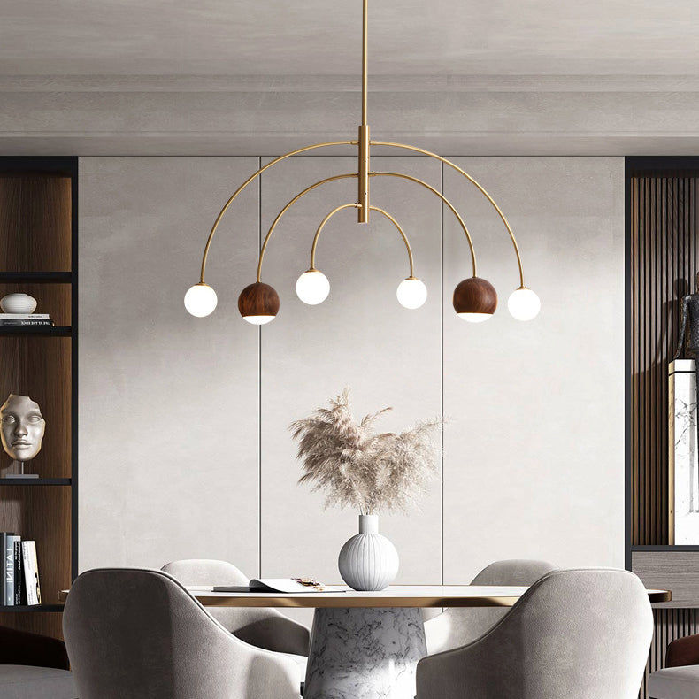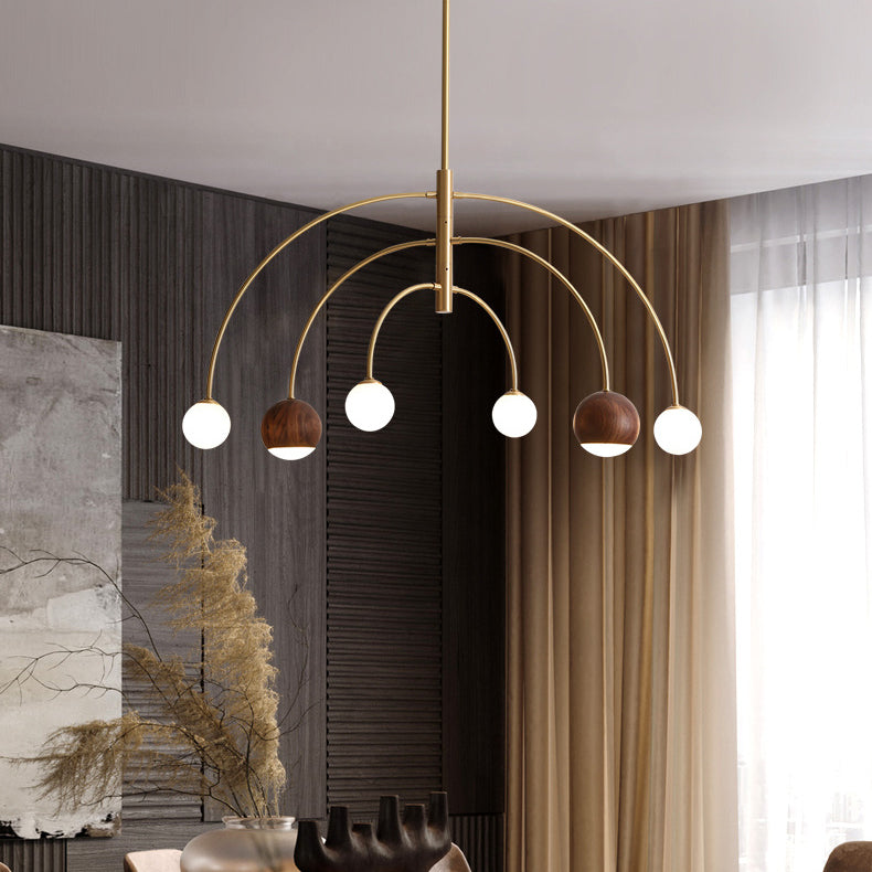 Contemporary Scandinavian Dome Semicircular Arc Orbs Walnut Ash Copper 6 - Light Chandelier For Dining Room