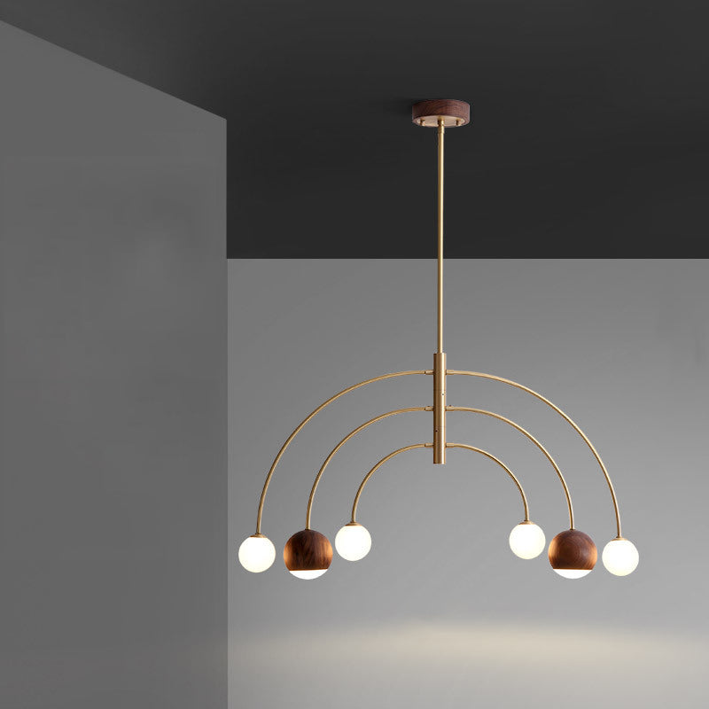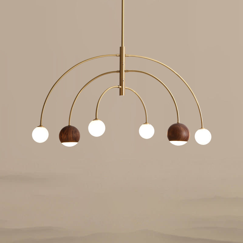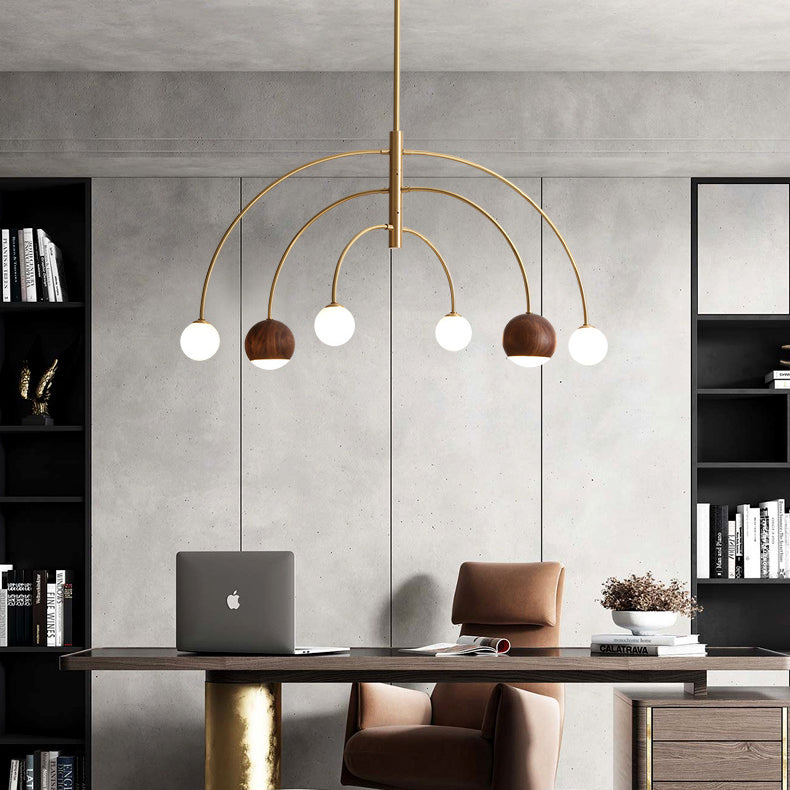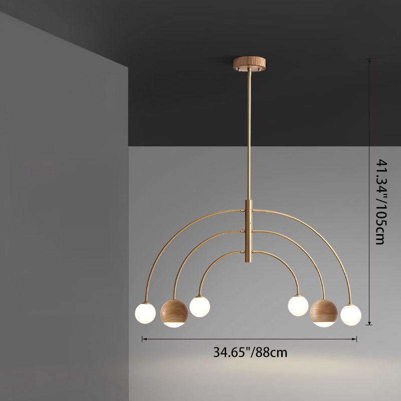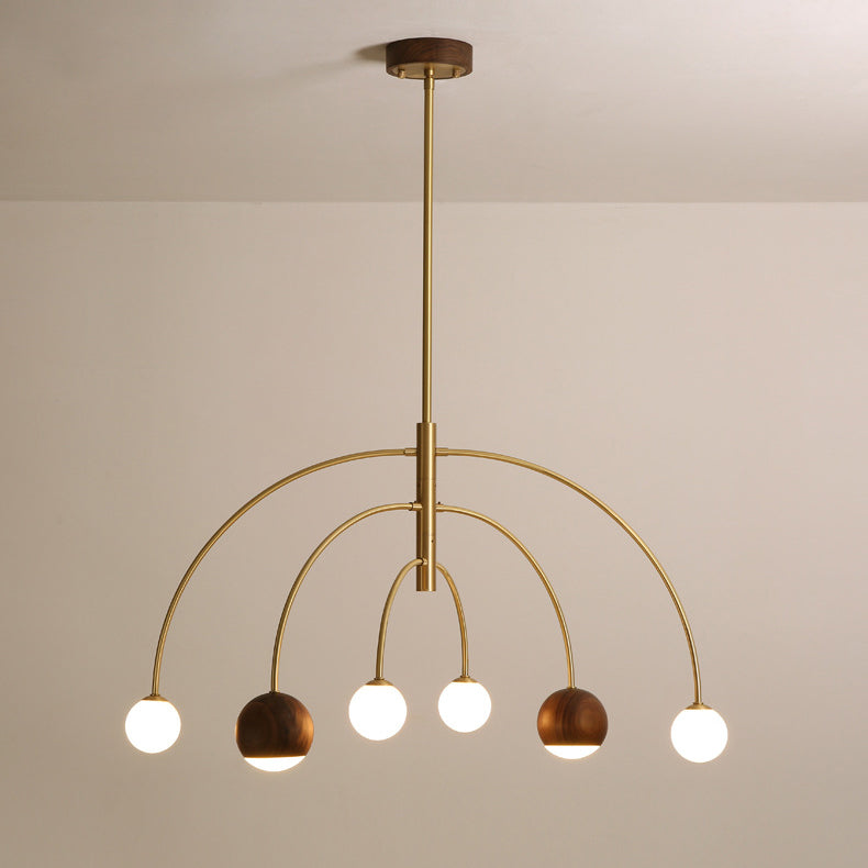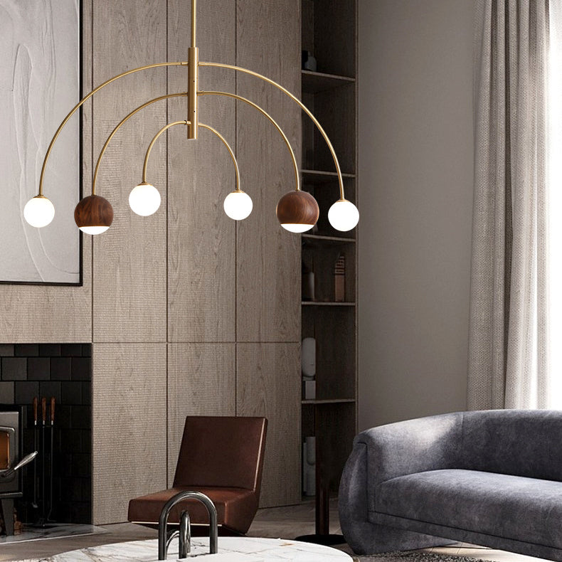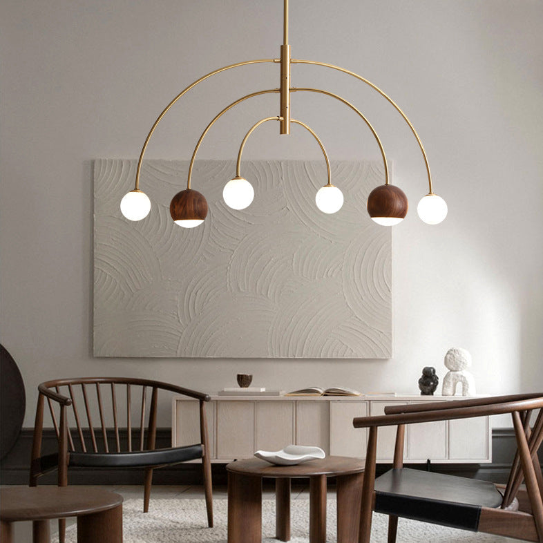 Contemporary Scandinavian Dome Semicircular Arc Orbs Walnut Ash Copper 6 - Light Chandelier For Dining Room