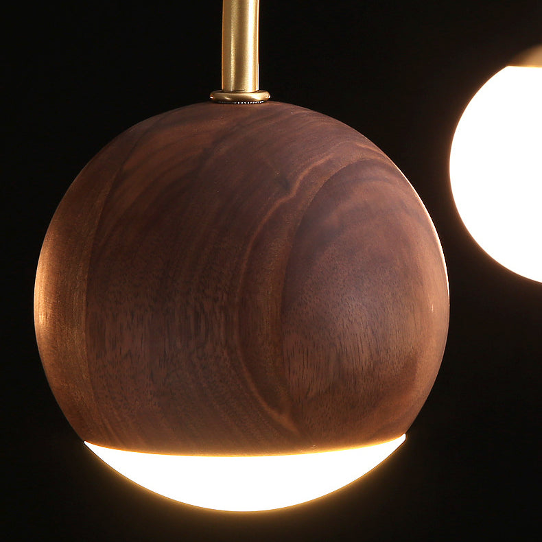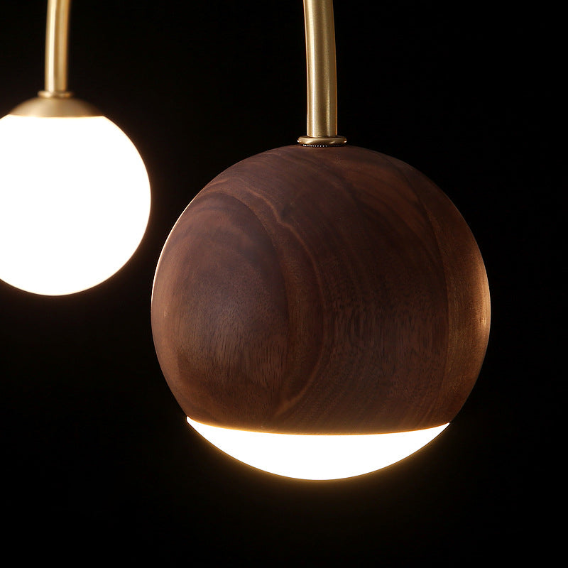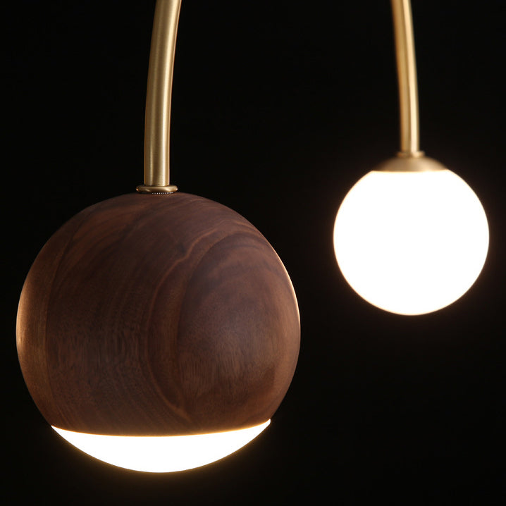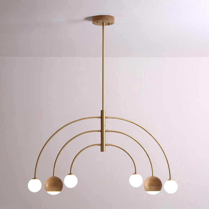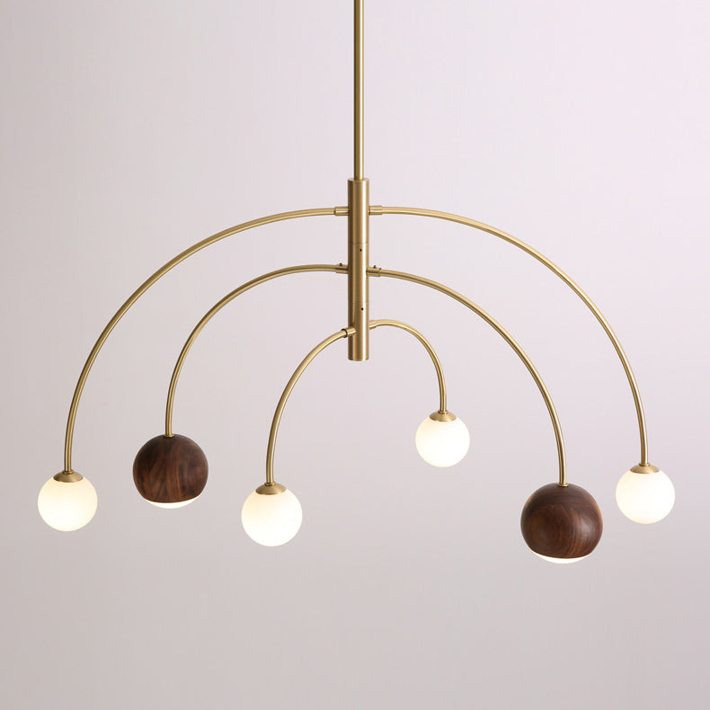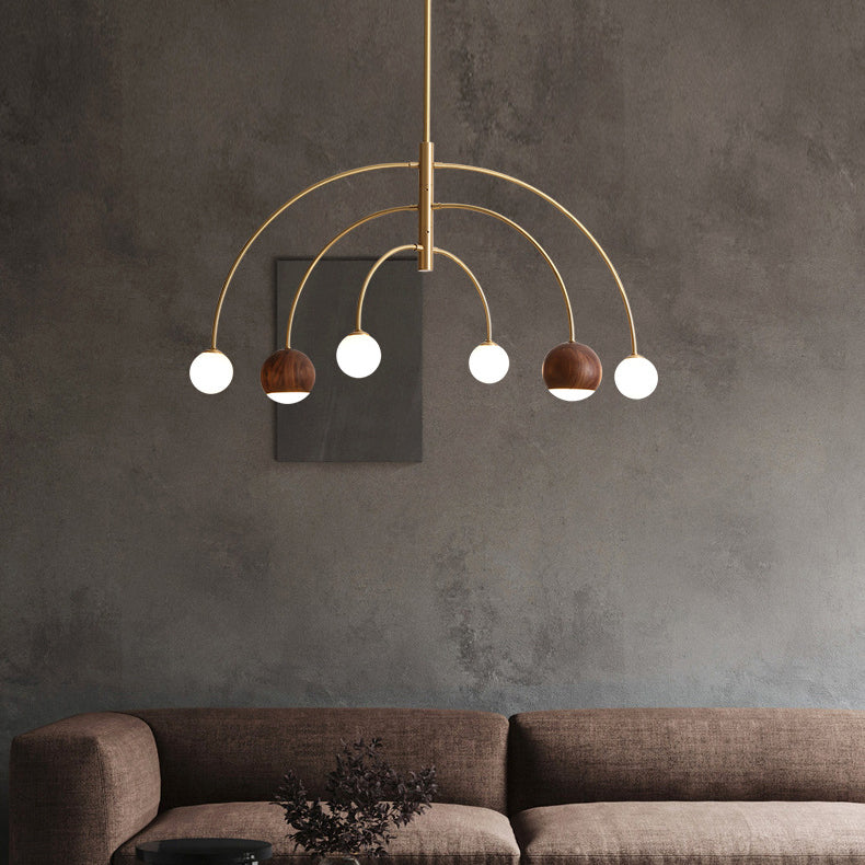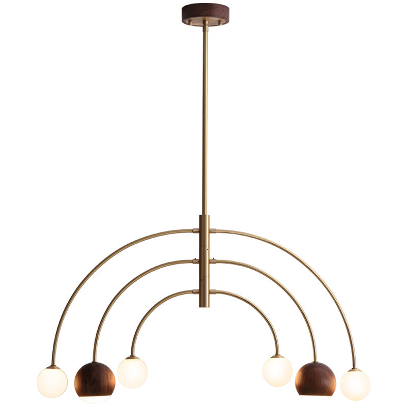 Contemporary Scandinavian Dome Semicircular Arc Orbs Walnut Ash Copper 6 - Light Chandelier For Dining Room