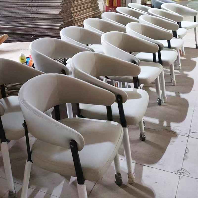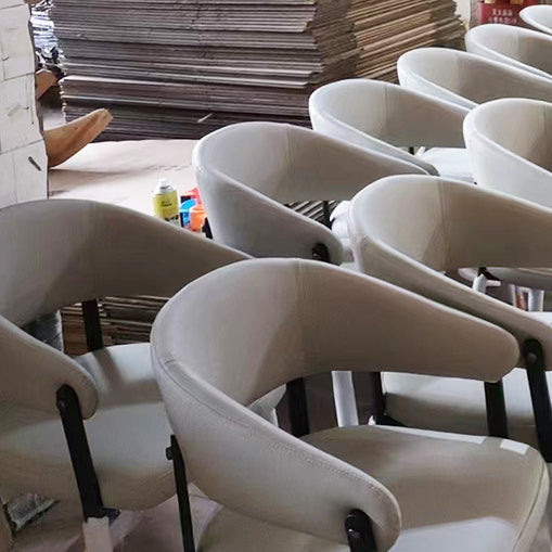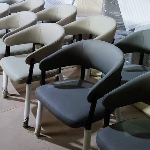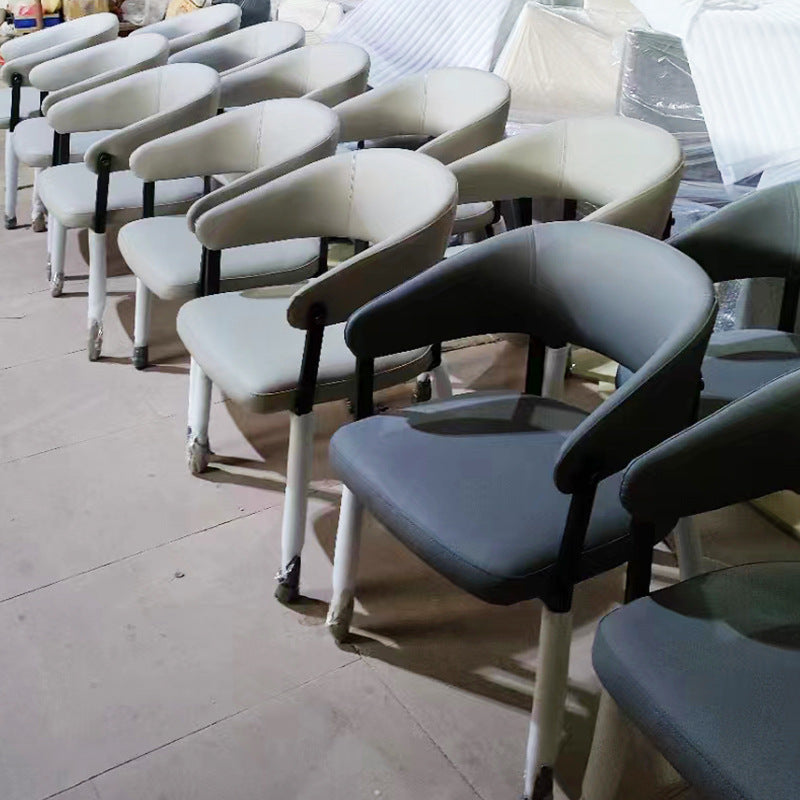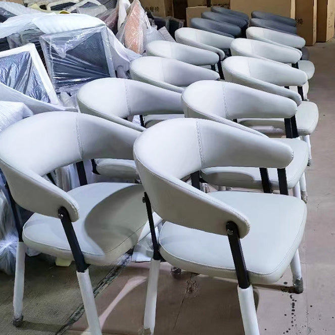 Contemporary Scandinavian Faux Leather Carbon Steel Semi-Enclosed Rounded Square Dining Chair With Backrest For Living Room & Dining Room