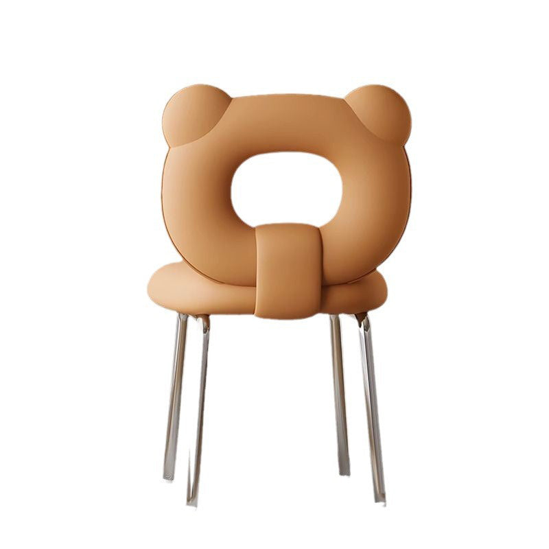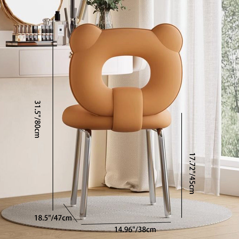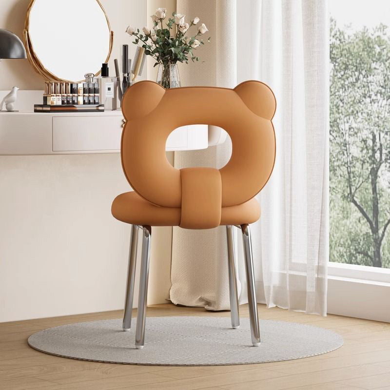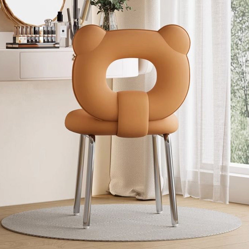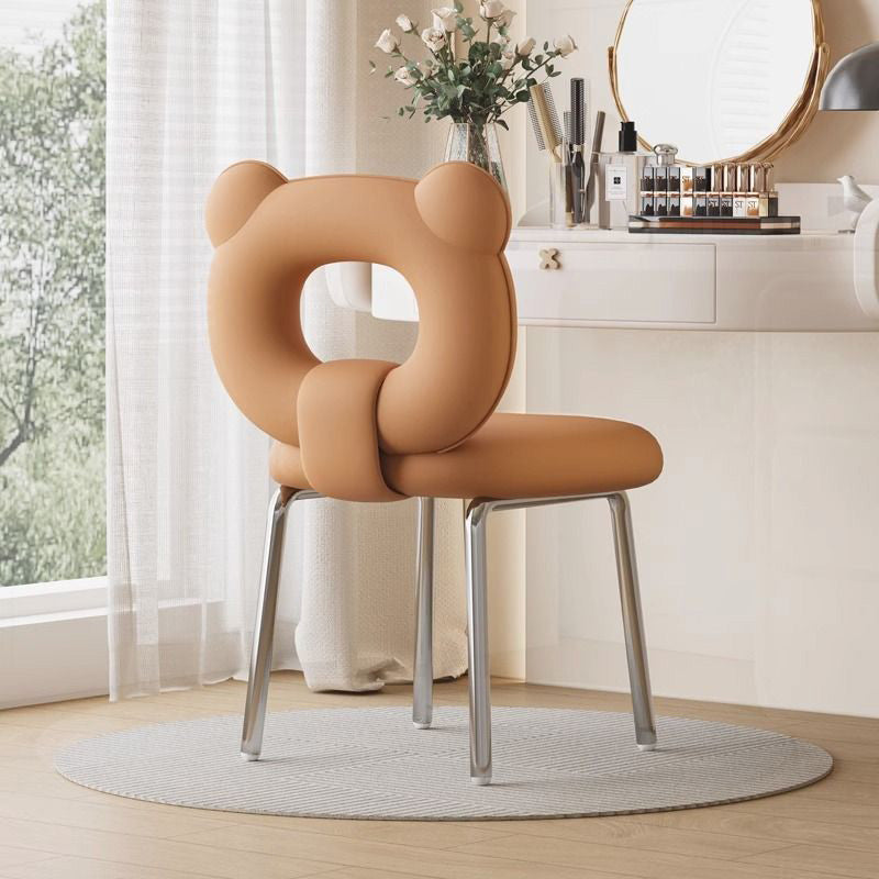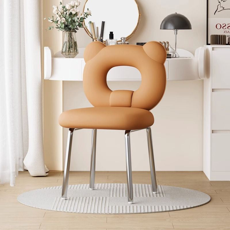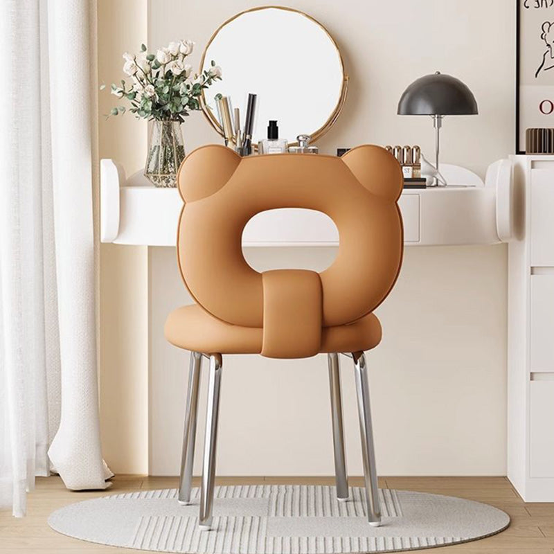 Contemporary Scandinavian Faux Leather Upholstered Metal Legs Vanity Stool Bear Back For Living Room