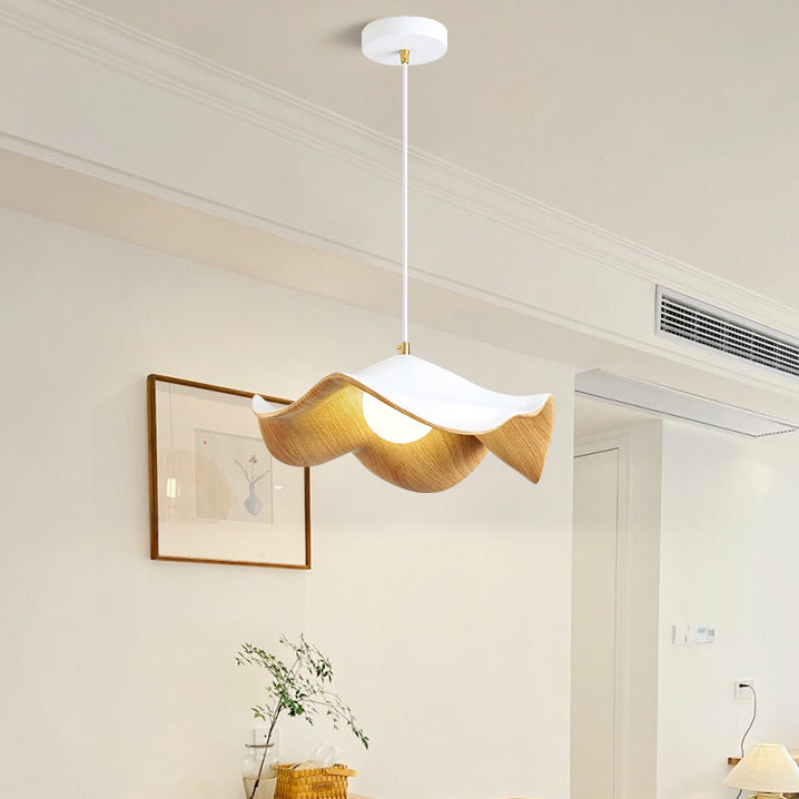 Contemporary Scandinavian Floral Lotus Leaf Resin Iron 1-Light Pendant Light For Living Room