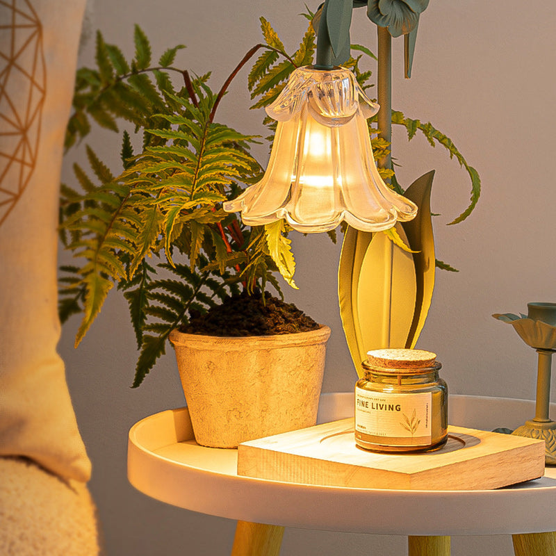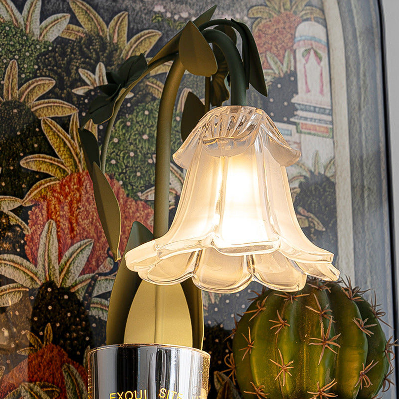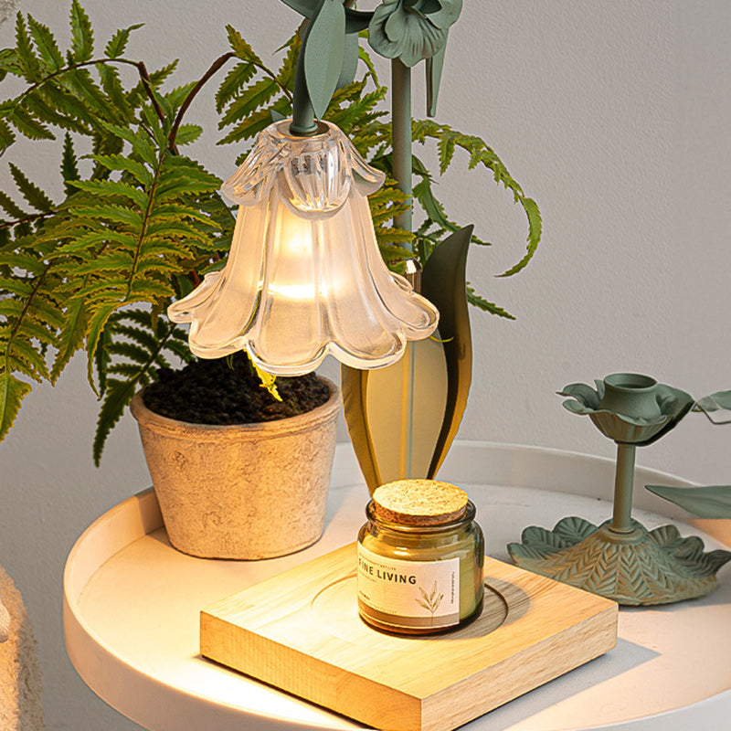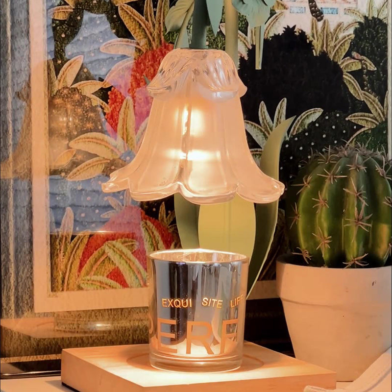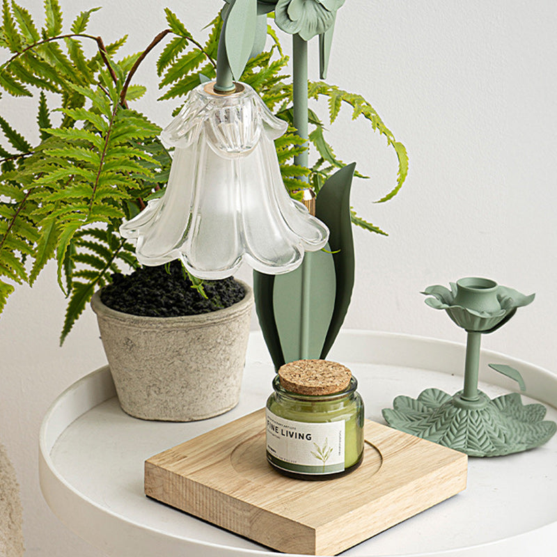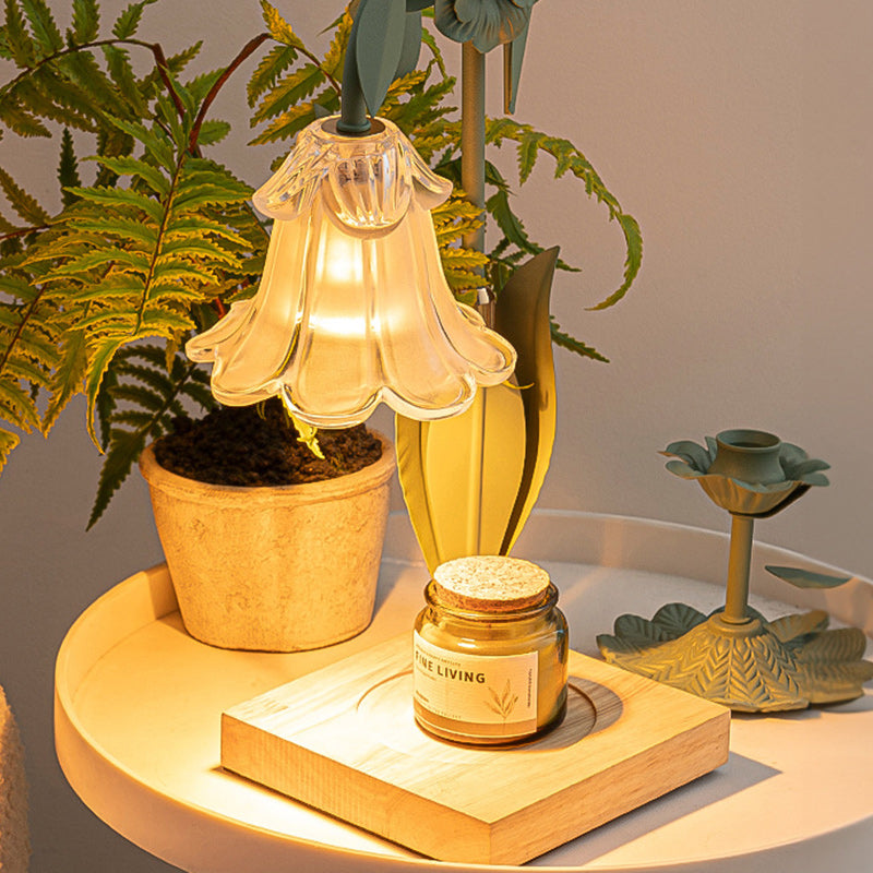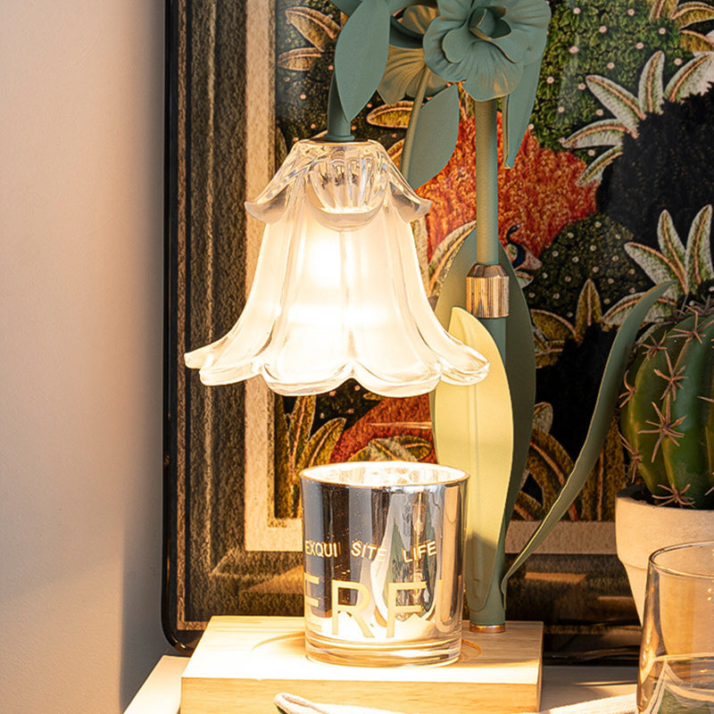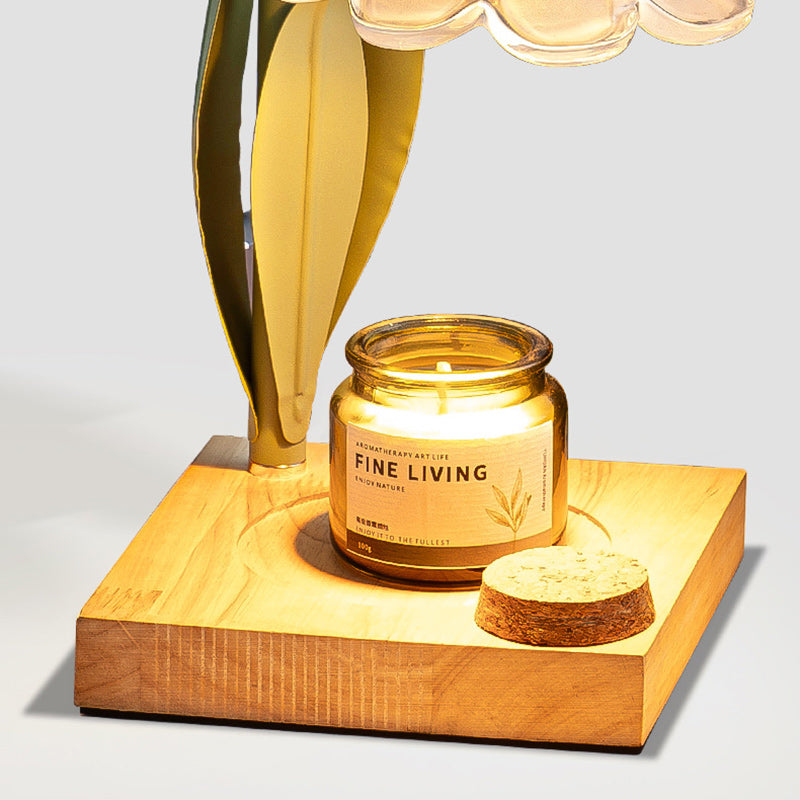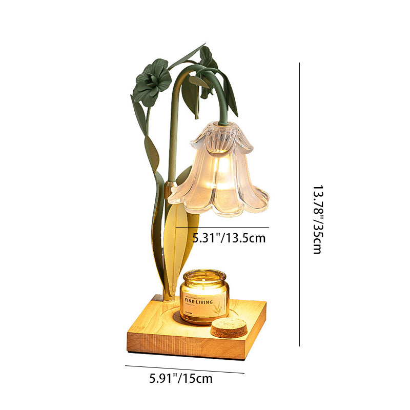Contemporary Scandinavian Flower Iron Wood Glass 1-Light Melting Wax Table Lamp For Living Room