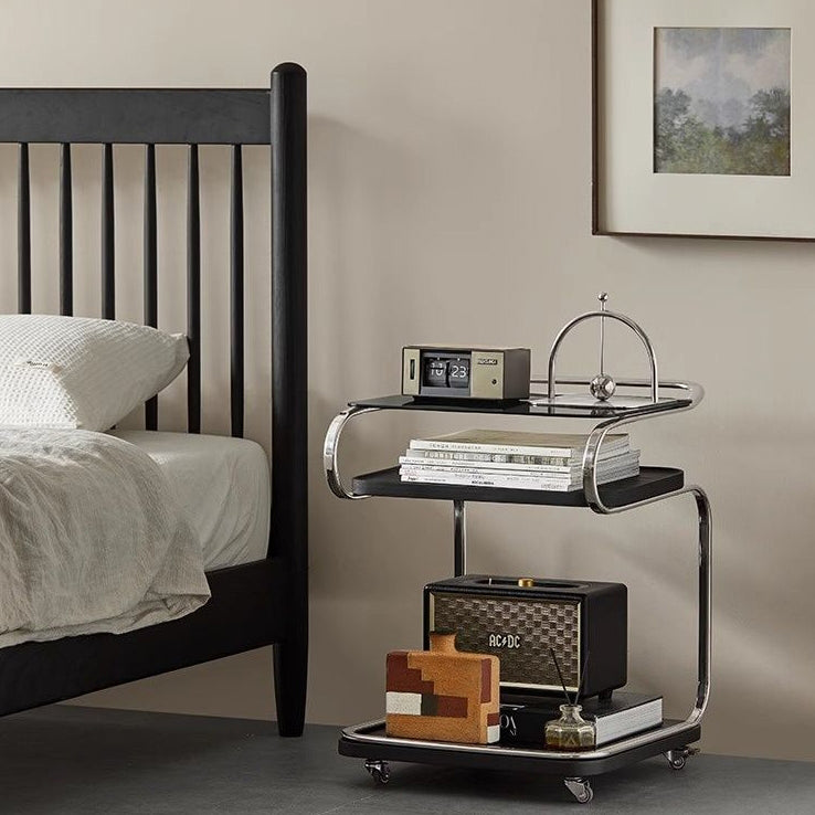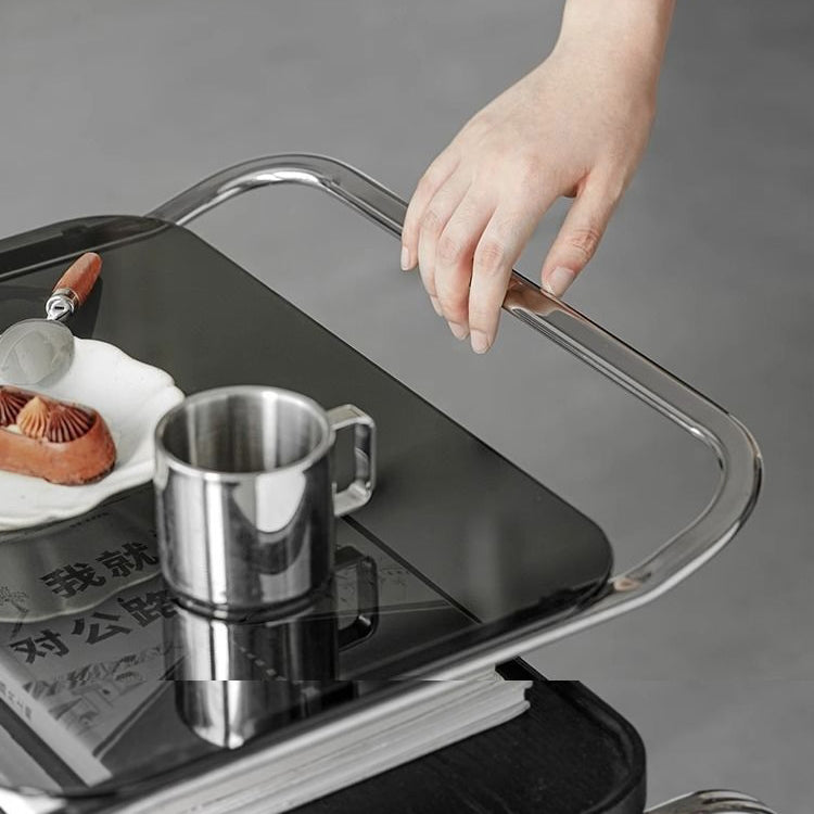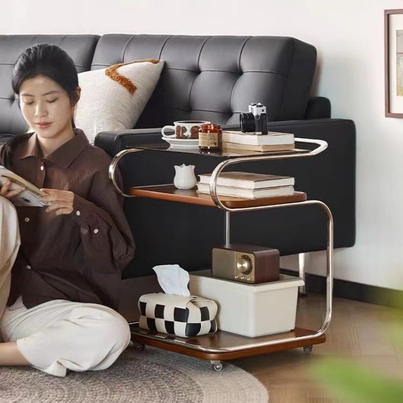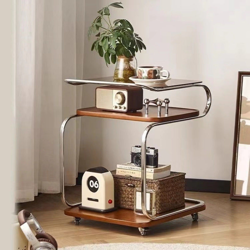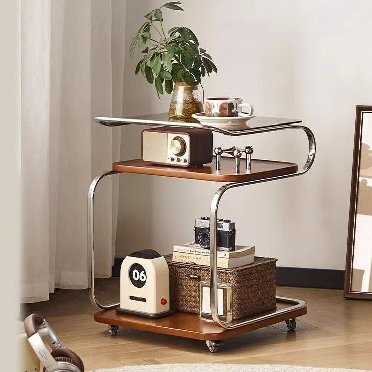 Contemporary Scandinavian Geometry Square Glass Solid Wood Stainless Steel Side Table 3 - Tier For Dining Room