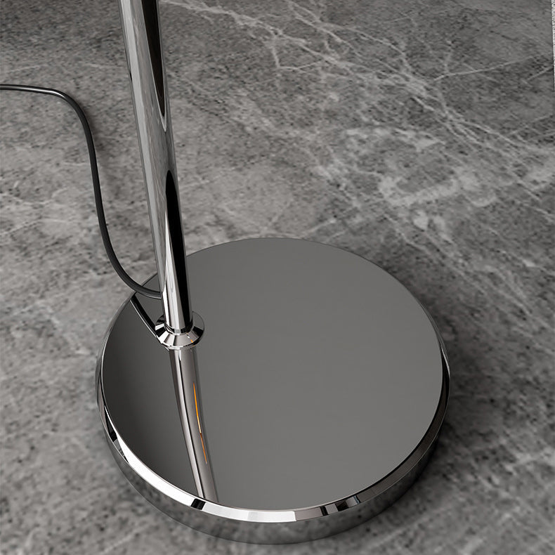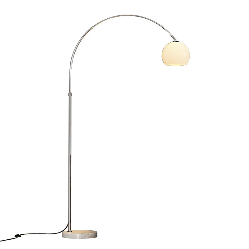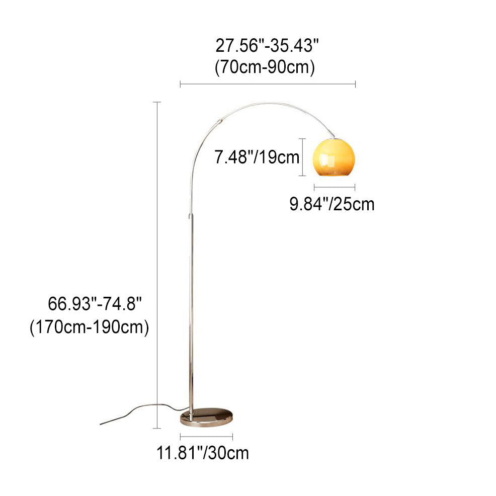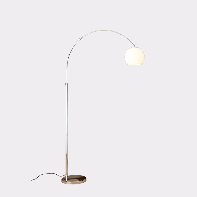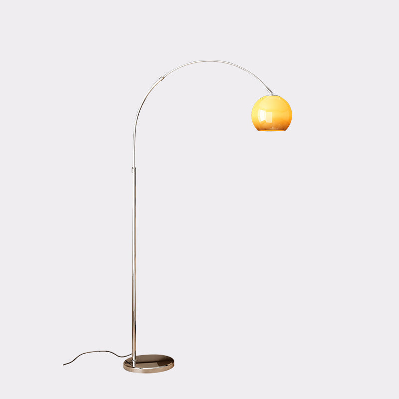 Contemporary Scandinavian Glass Round Shade Fishing Rod Iron 1-Light Standing Floor Lamp For Living Room