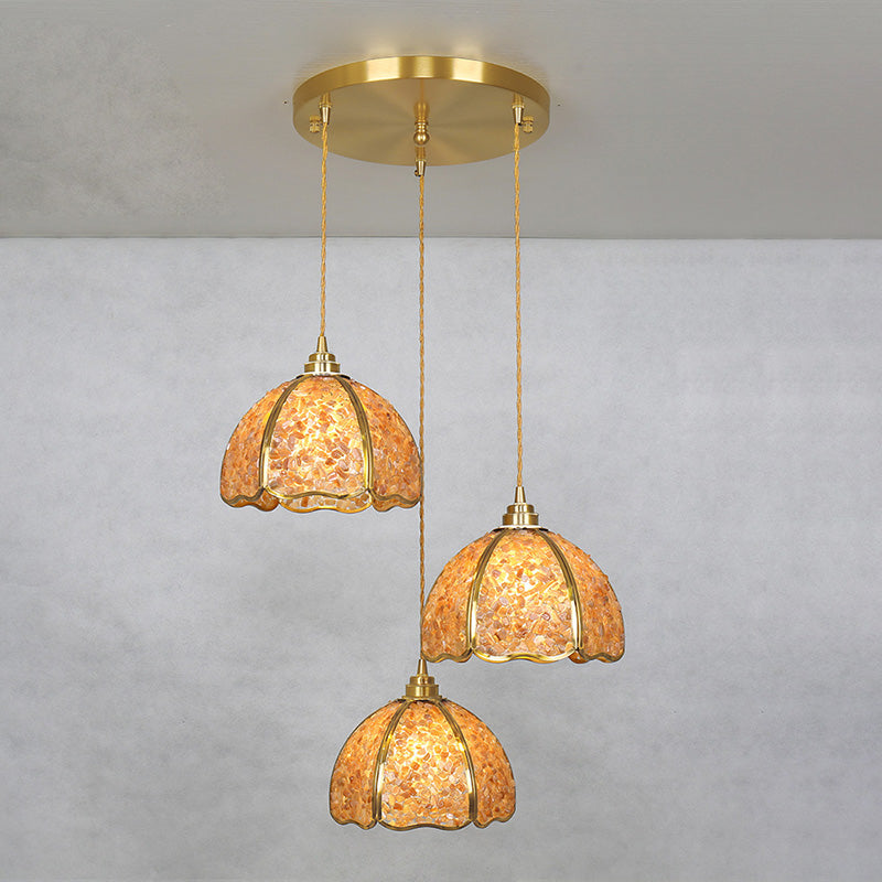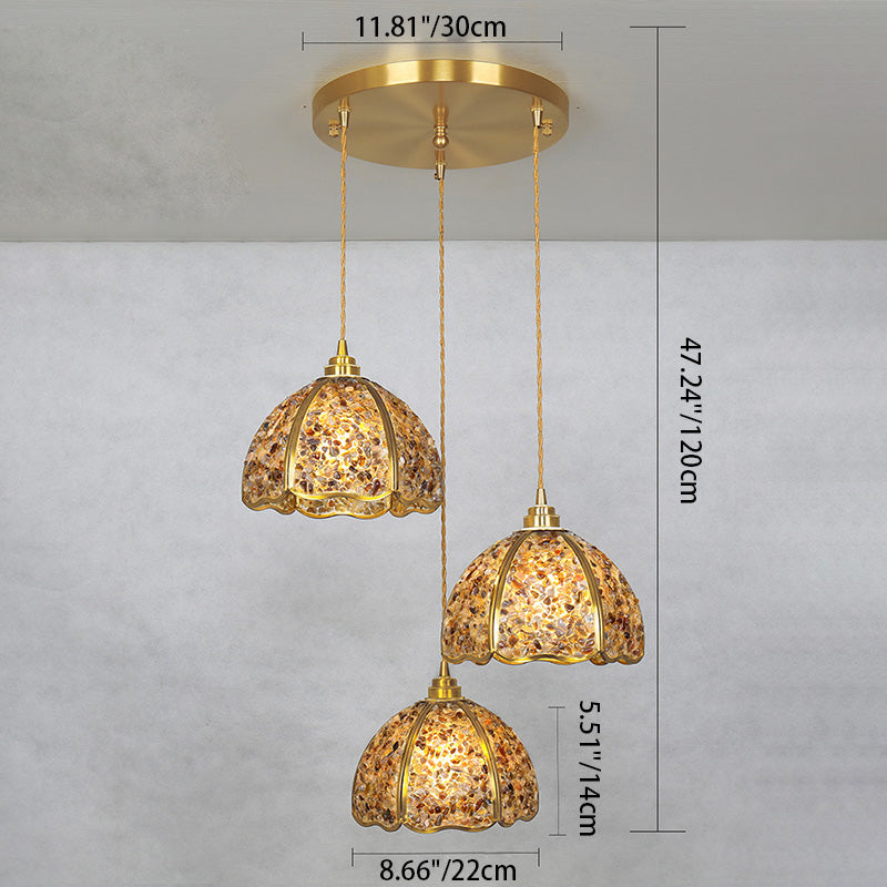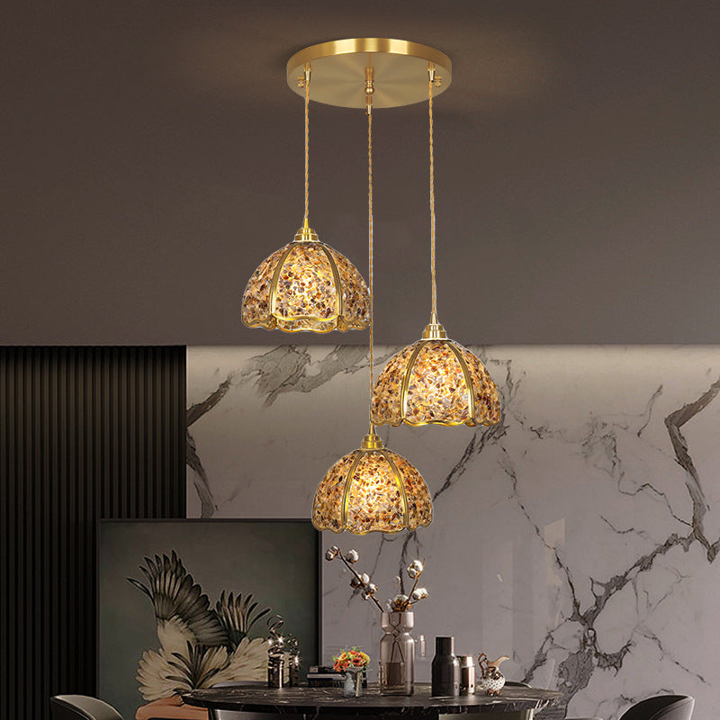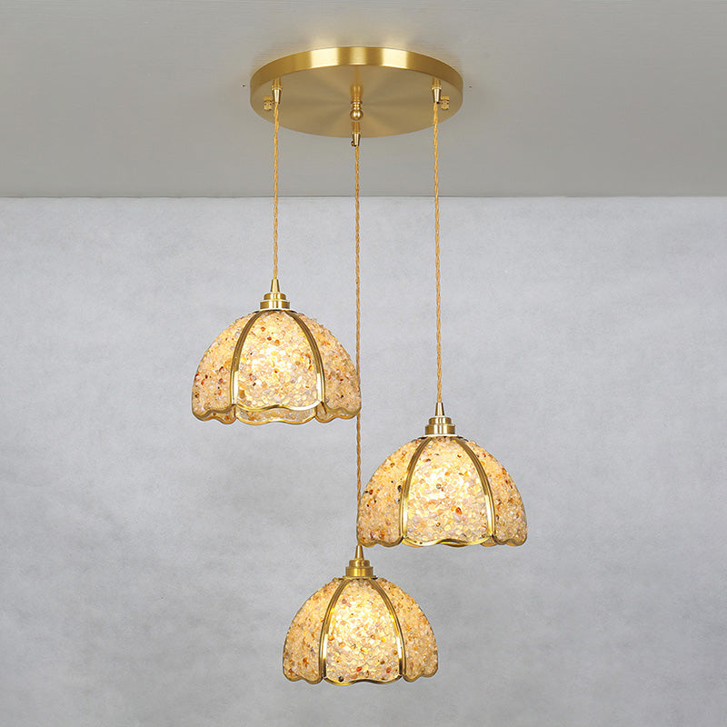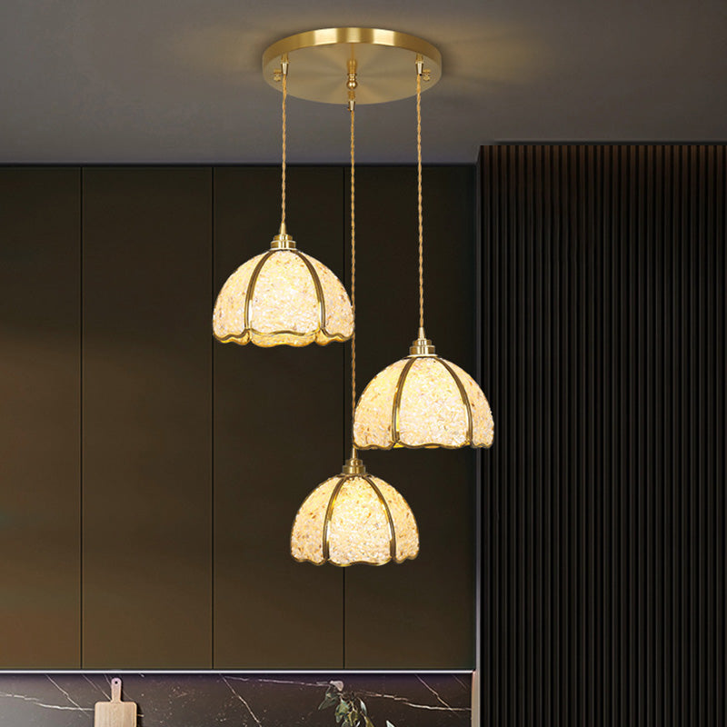Contemporary Scandinavian Half Circle Stripe Shard Crystal Brass 3-Light Chandelier Island Light For Dining Room