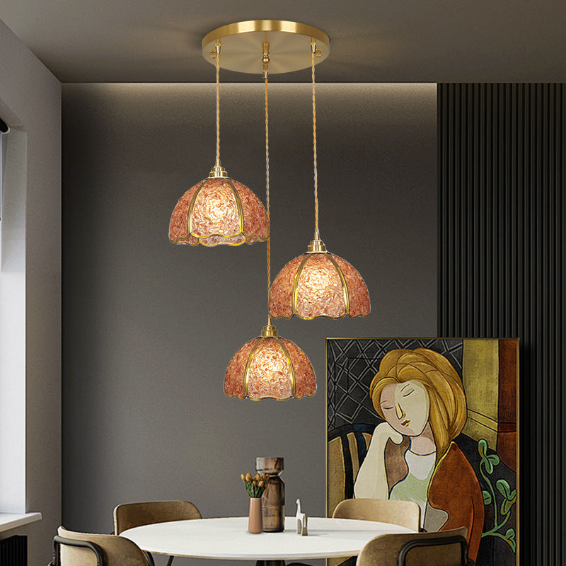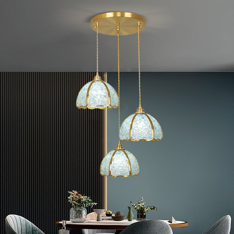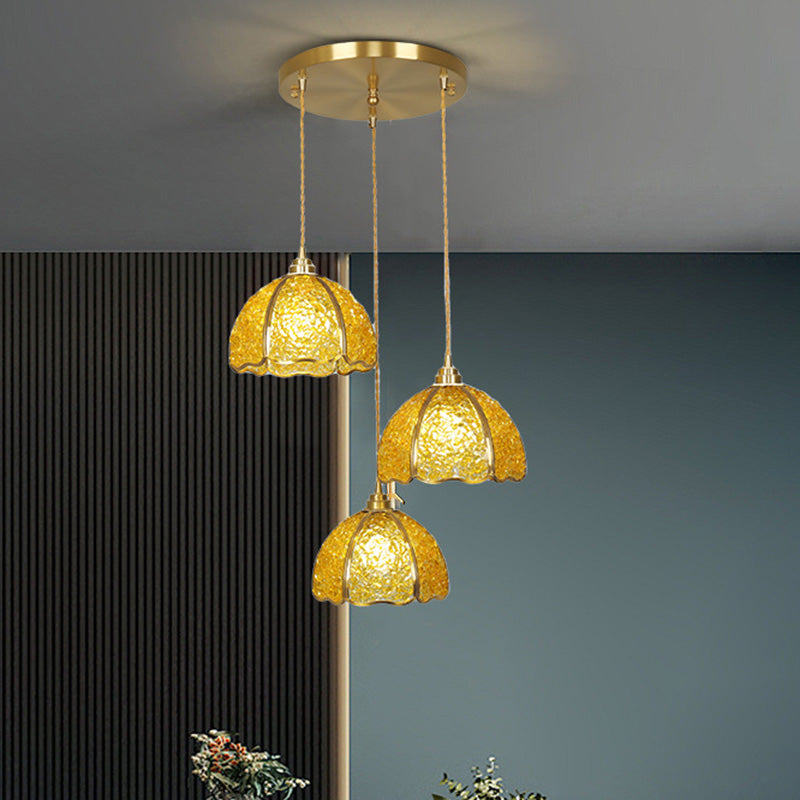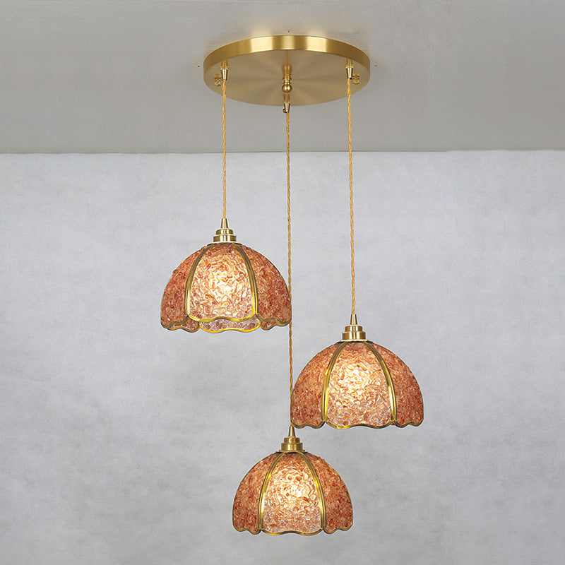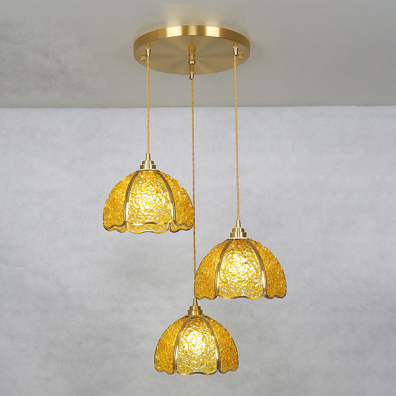 Contemporary Scandinavian Half Circle Stripe Shard Crystal Brass 3-Light Chandelier Island Light For Dining Room