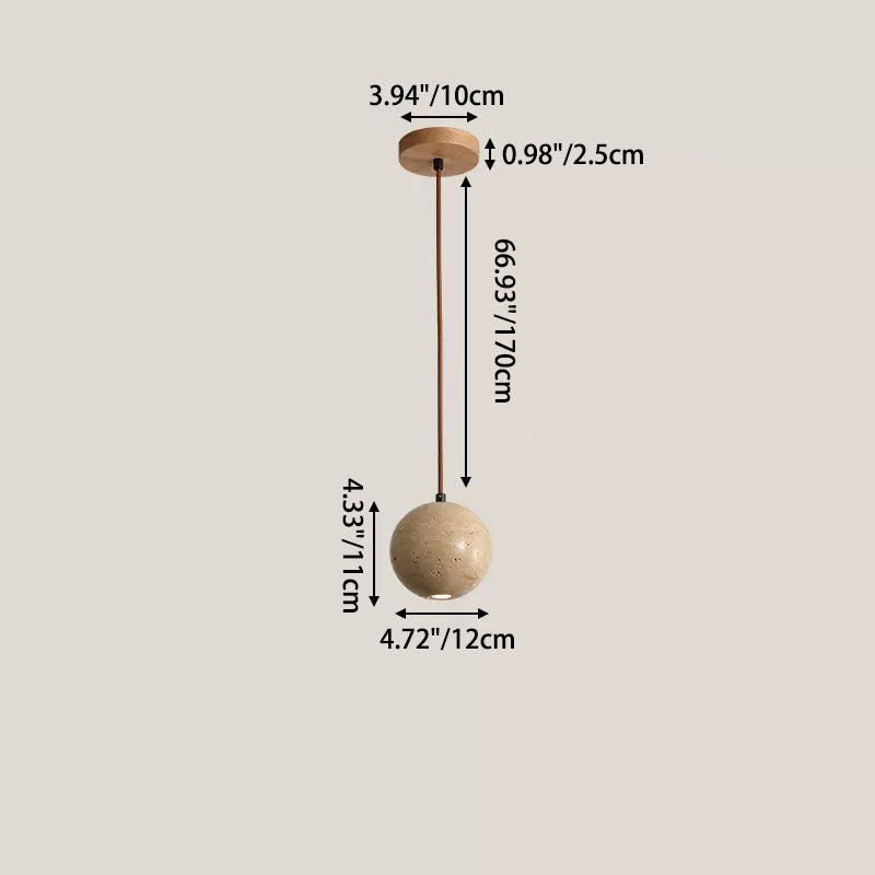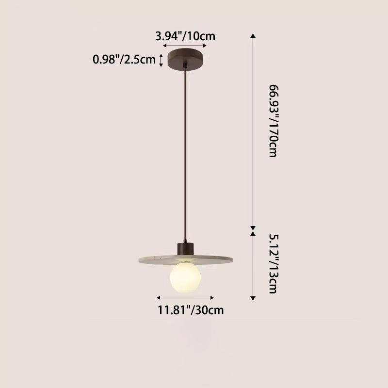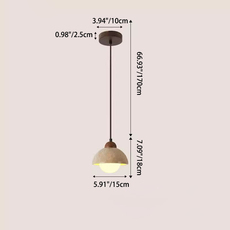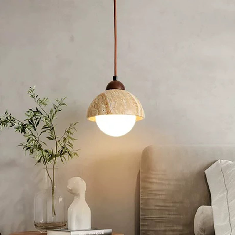 Contemporary Scandinavian Half Globe Cylindrical Stone Solid Wood Glass 1-Light Pendant Light For Bedroom