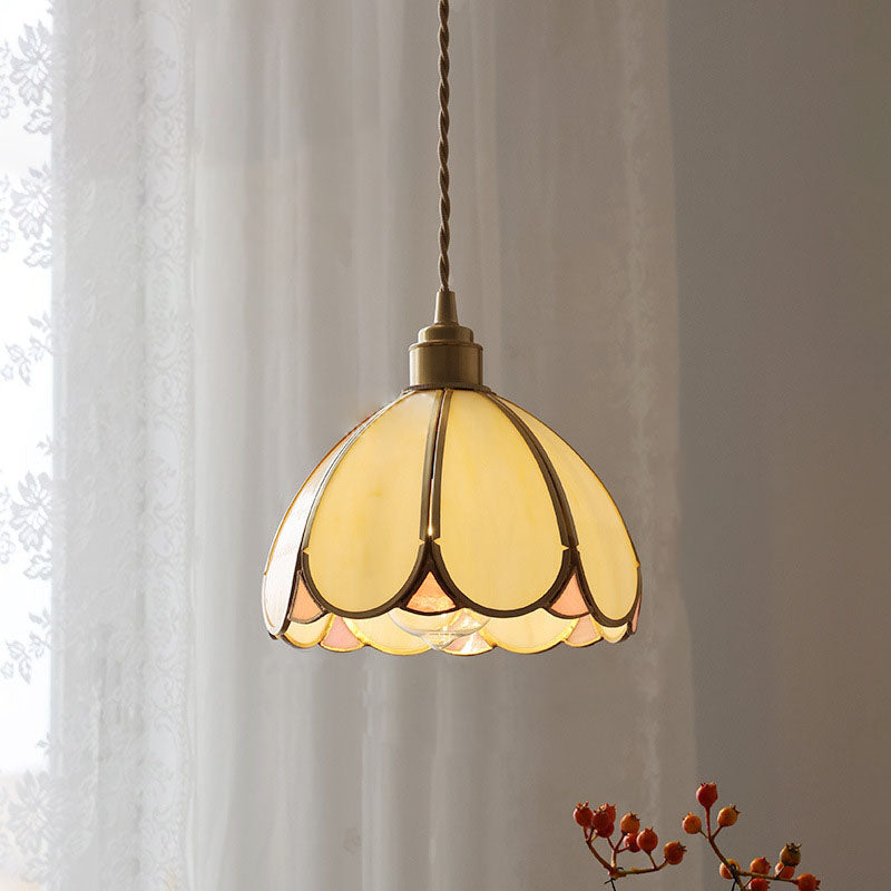 Contemporary Scandinavian Half-Round Globe Copper Glass Walnut 1-Light Pendant Light For Bedroom
