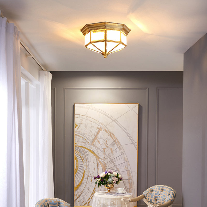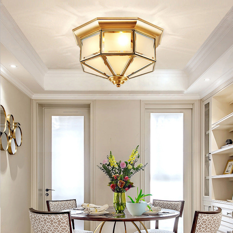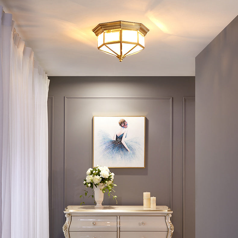 Contemporary Scandinavian Hexagonal Square Glass Copper Iron 2/3 Light Flush Mount Ceiling Light For Bedroom
