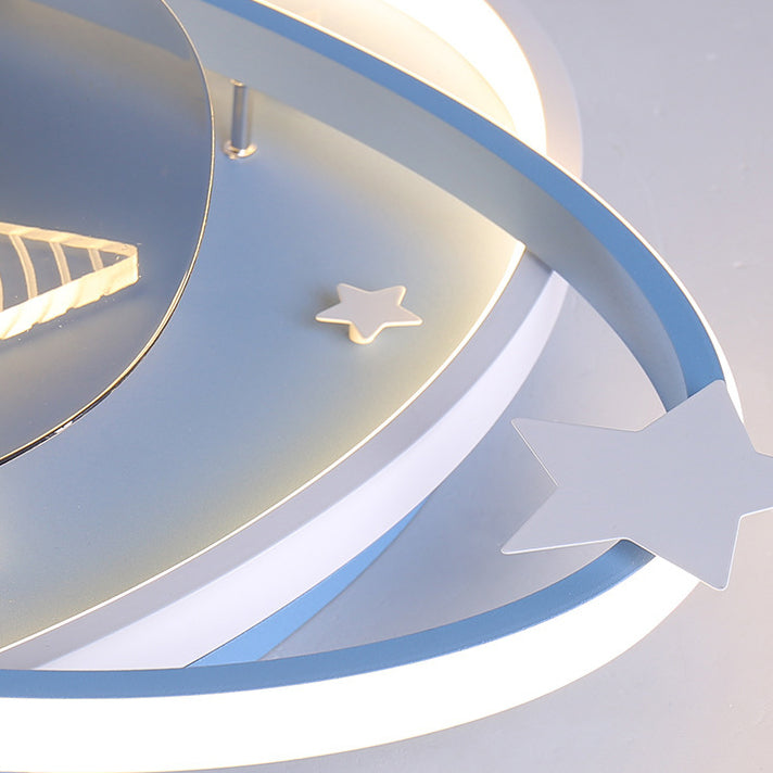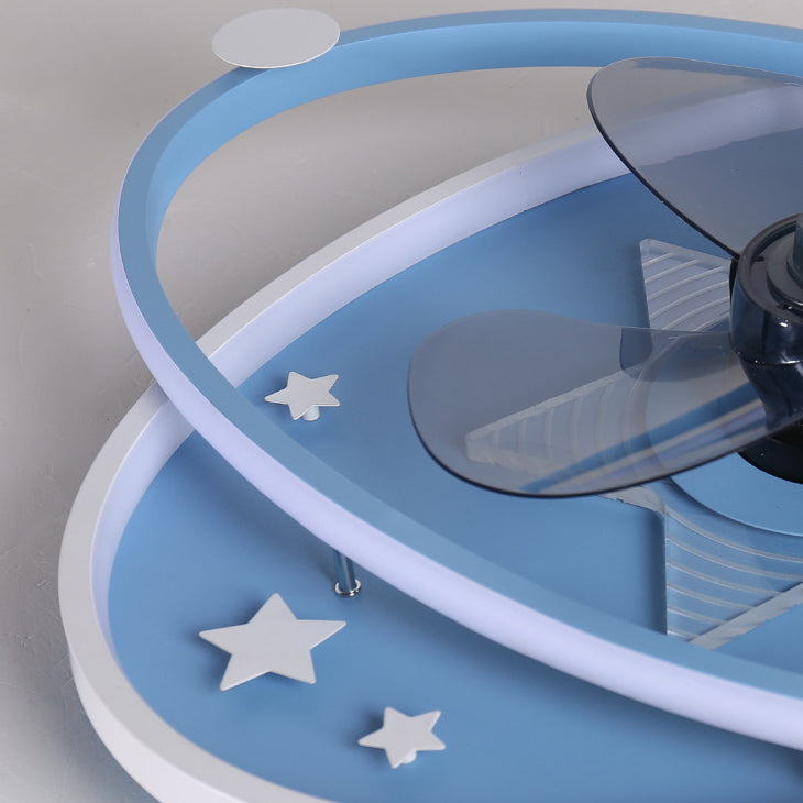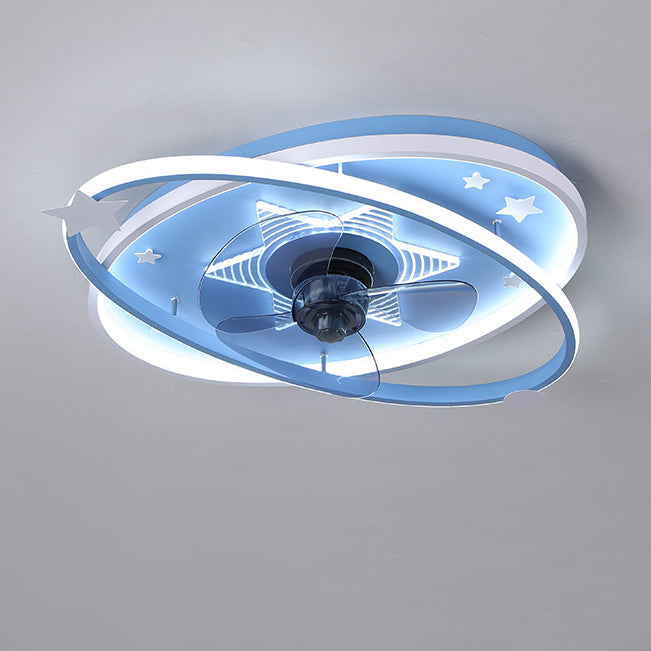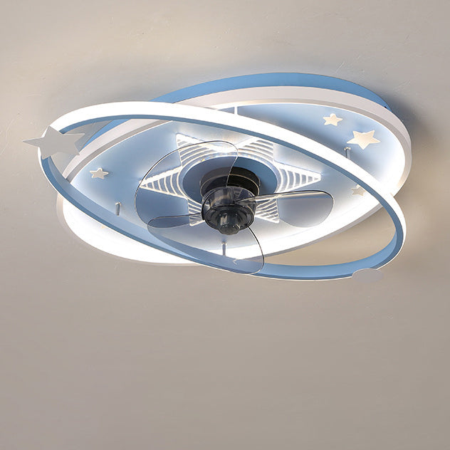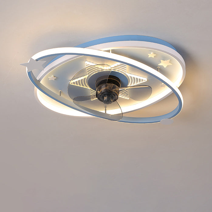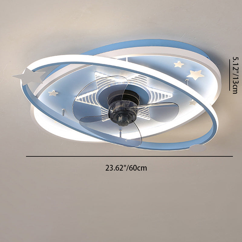 Contemporary Scandinavian Iron Acrylic Elliptical Star LED Flush Mount Ceiling Fan Light For Bedroom
