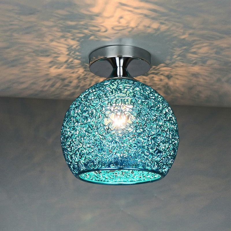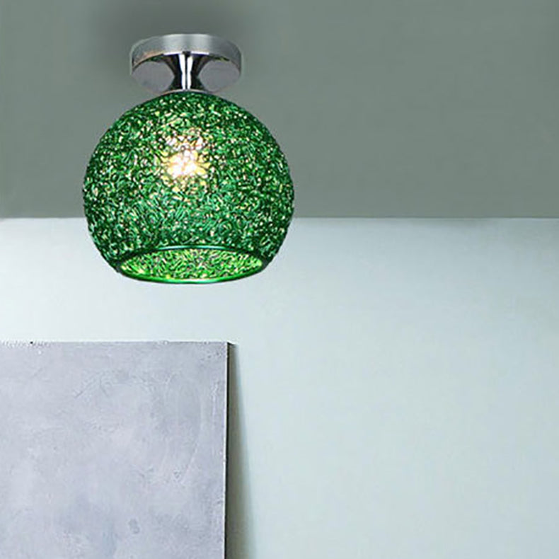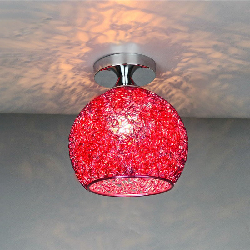 Contemporary Scandinavian Iron Aluminum Weaving Ball 1-Light Semi-Flush Mount Ceiling Light For Hallway