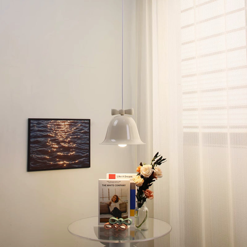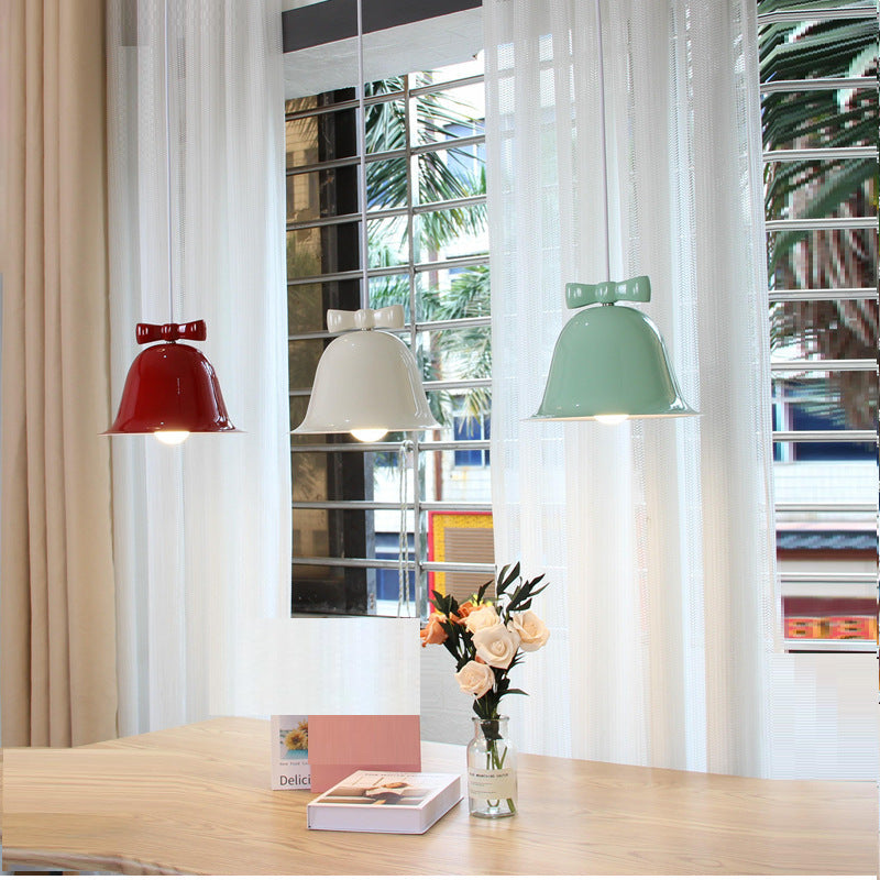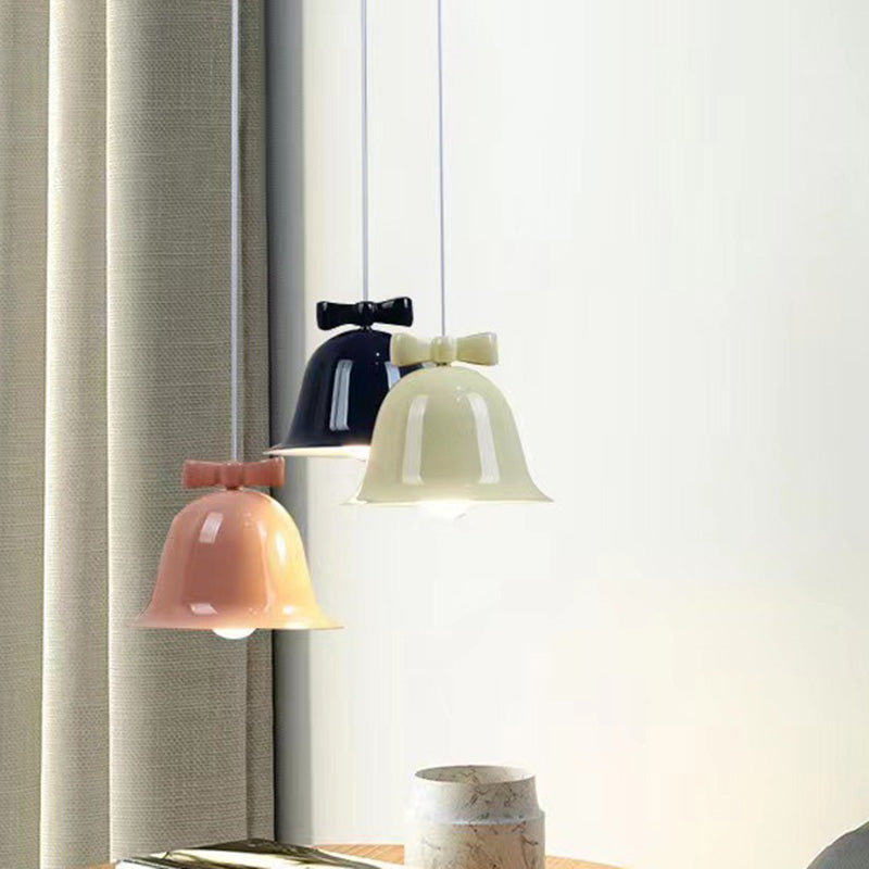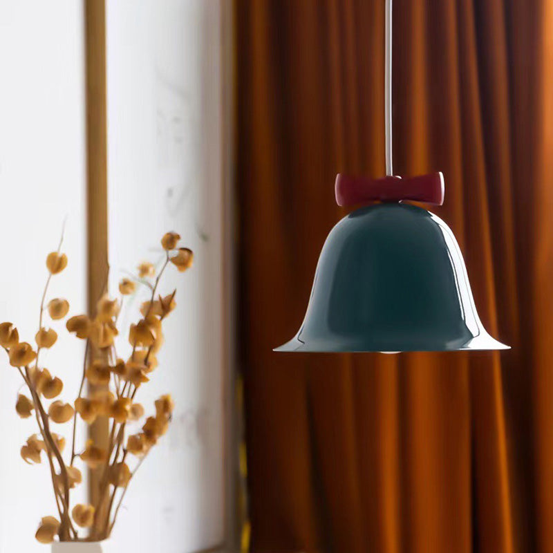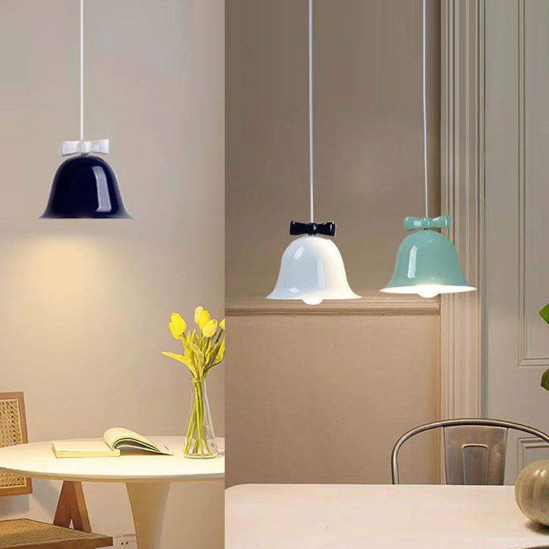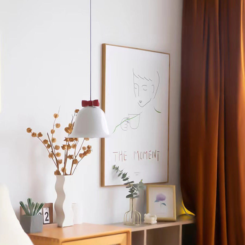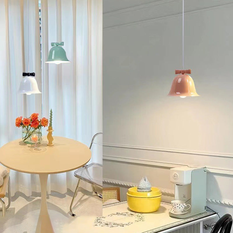 Contemporary Scandinavian Iron Ceramic Bell Bow Tie 1-Light Pendant Light For Dining Room