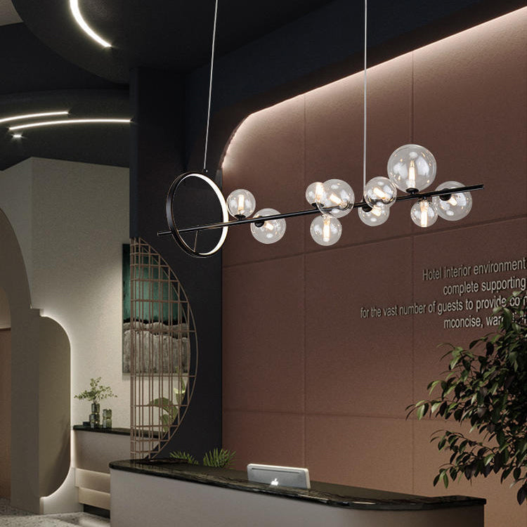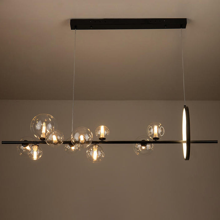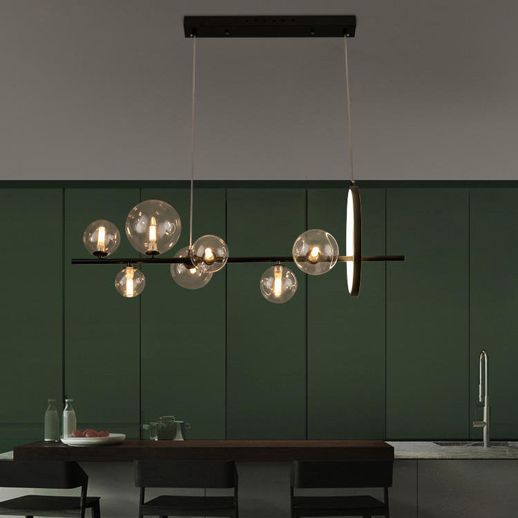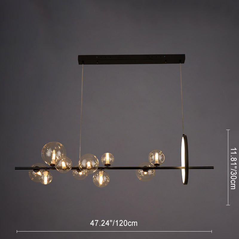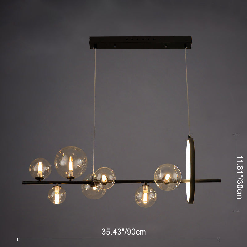 Contemporary Scandinavian Iron Glass Round Spherical 7/10 Light Island Light Chandelier For Dining Room