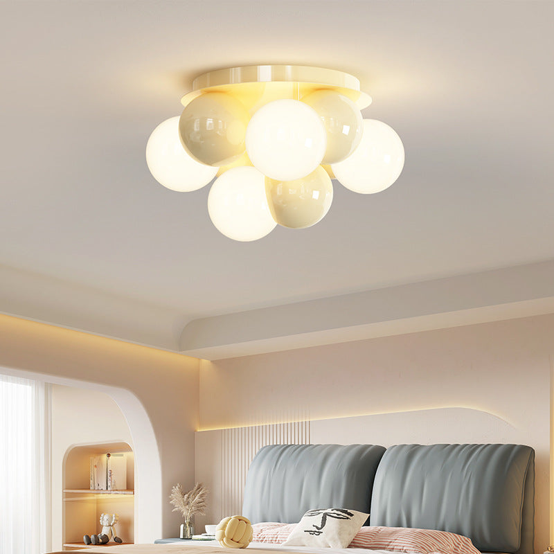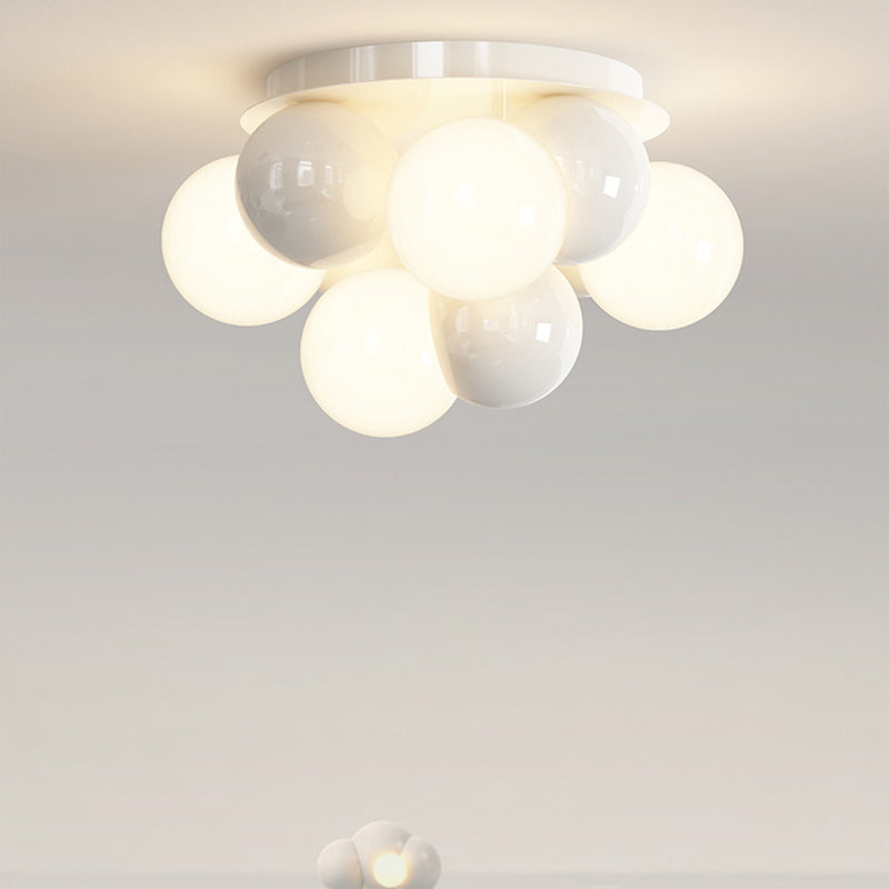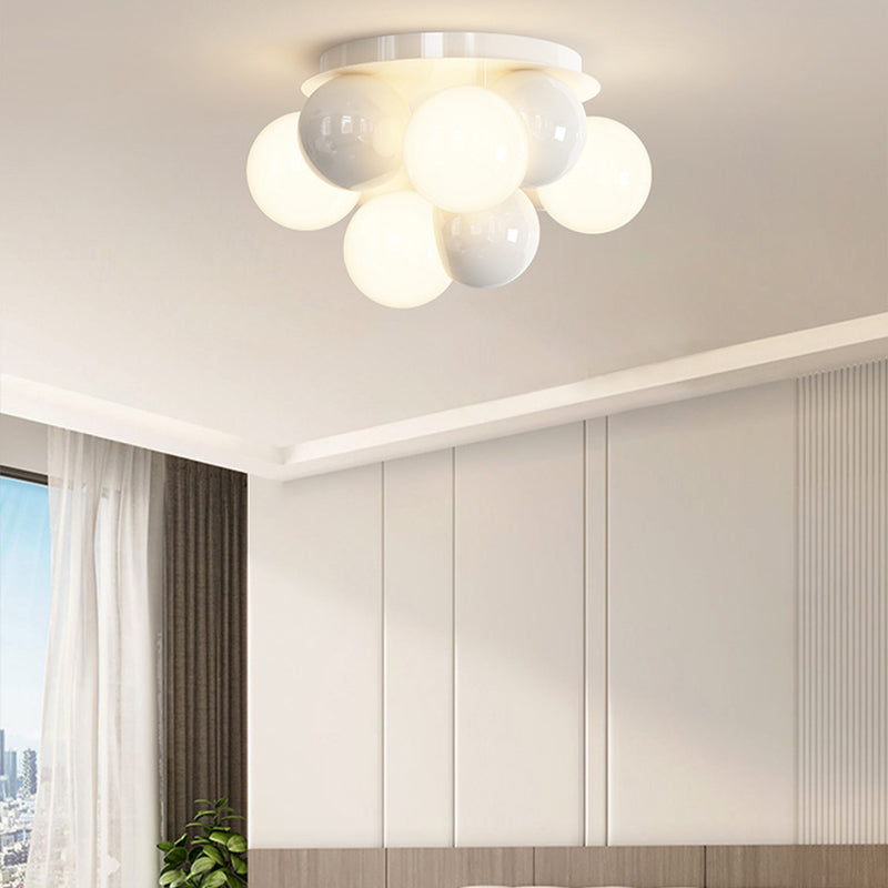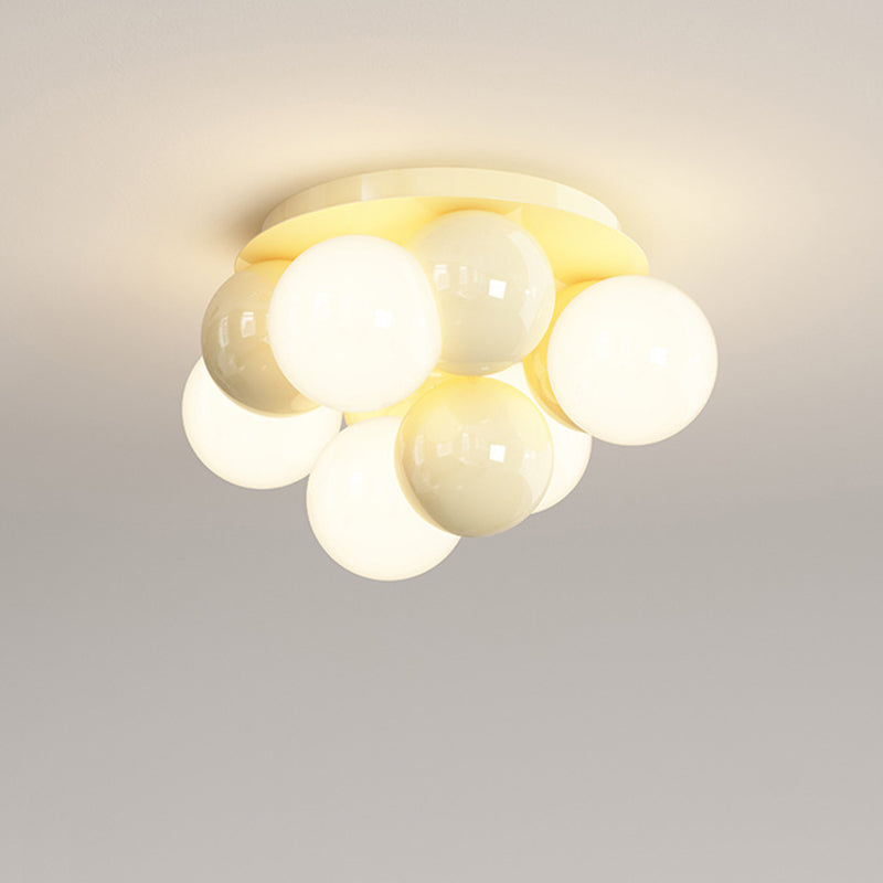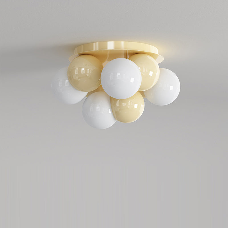Contemporary Scandinavian Iron Magic Bean Glass Shade 1-Light Semi-Flush Mount Ceiling Light For Hallway