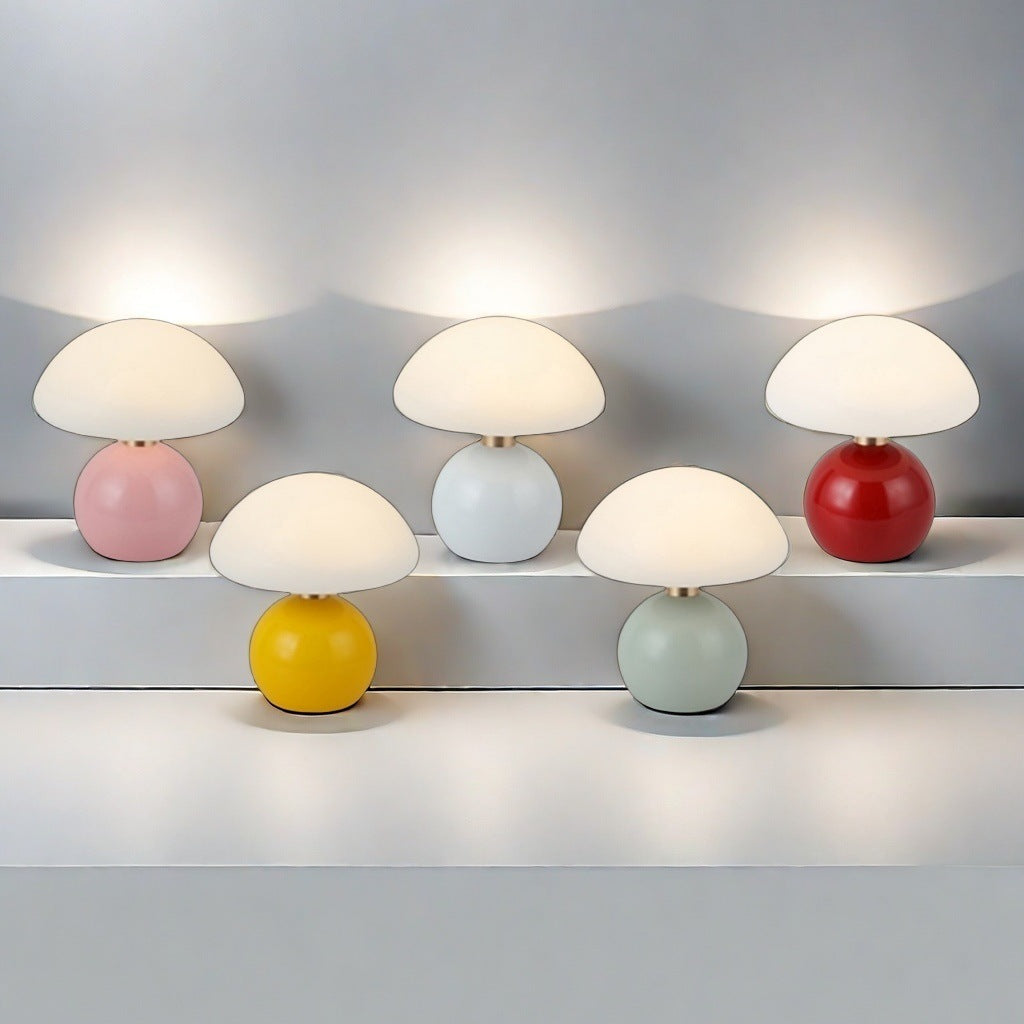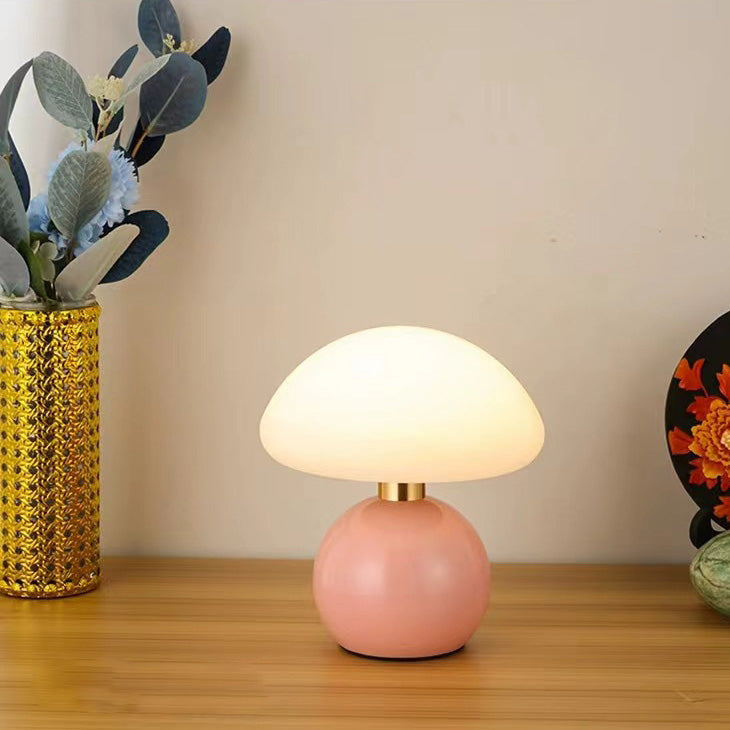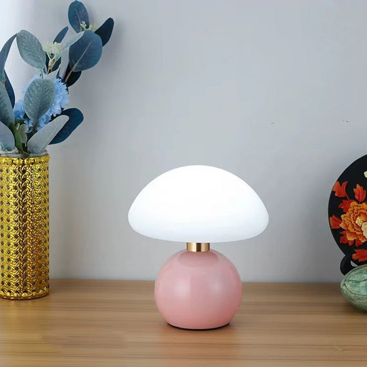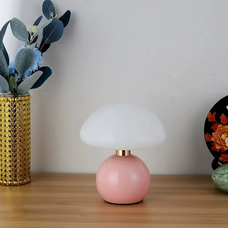 Contemporary Scandinavian Iron PE Round Shade USB Rechargeable LED Table Lamp For Bedroom
