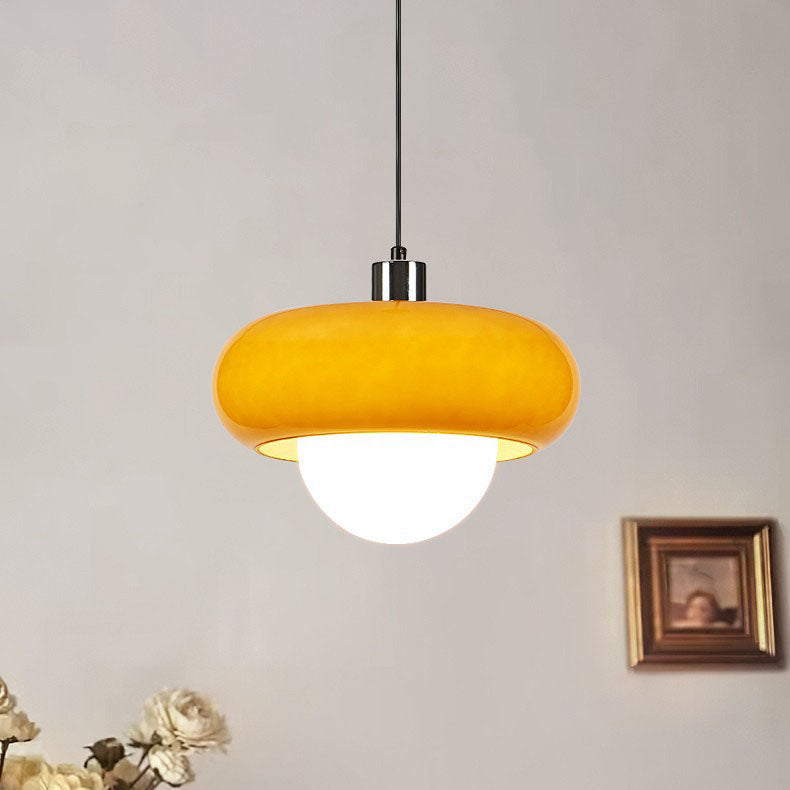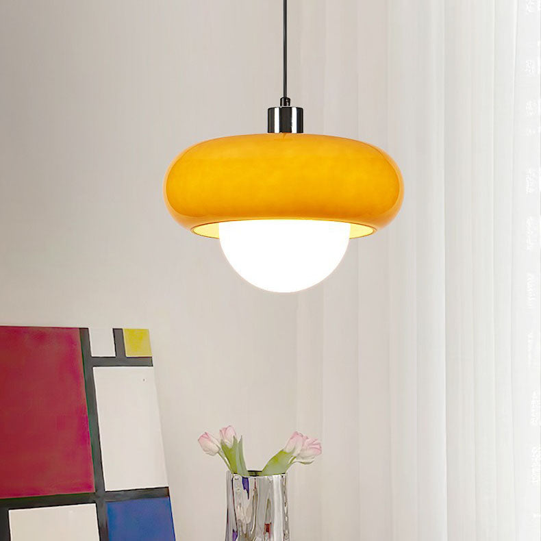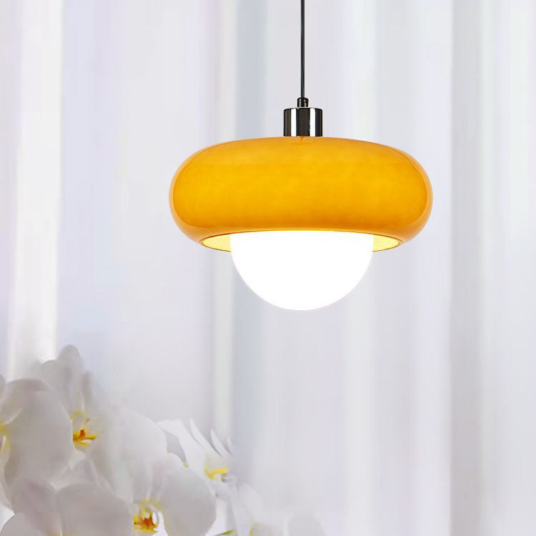Contemporary Scandinavian Iron Semi-circular Glass Shade 1-Light Pendant Light For Living Room