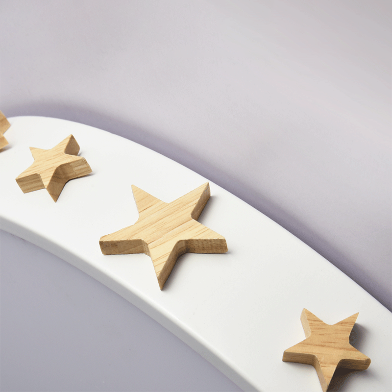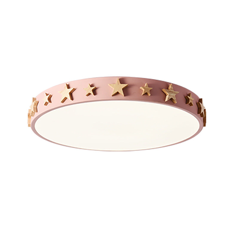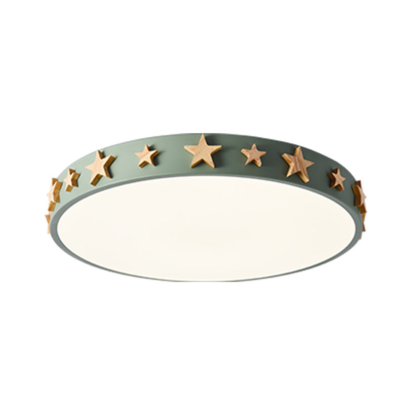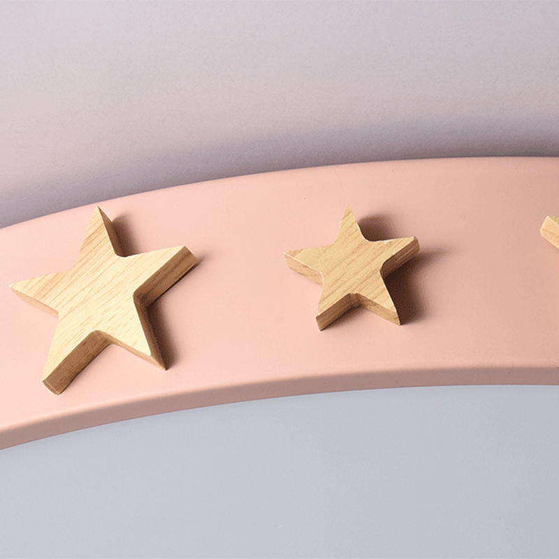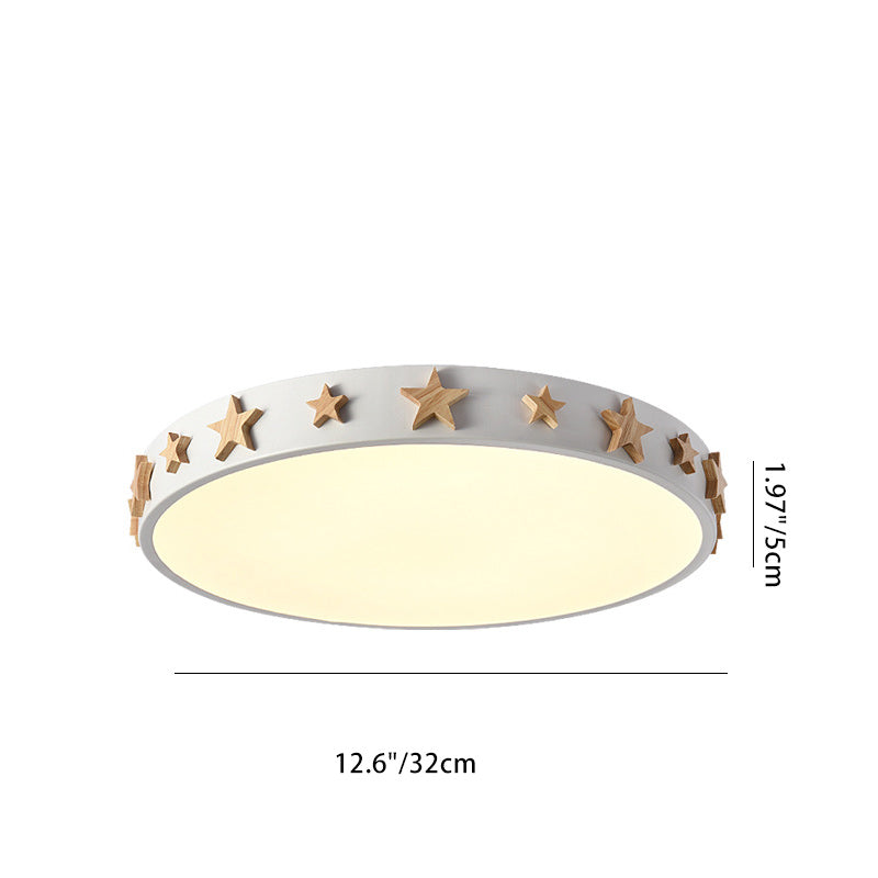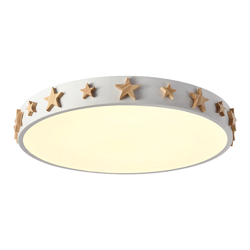 Contemporary Scandinavian Iron Wood Acrylic Round Star LED Flush Mount Ceiling Light For Bedroom