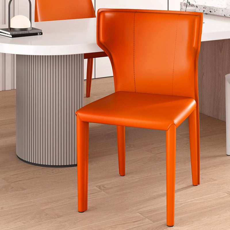 Contemporary Scandinavian Large Bullhead Square Saddle Leather Metal Dining Chair Backrest Armless For Dining Room