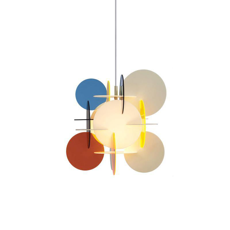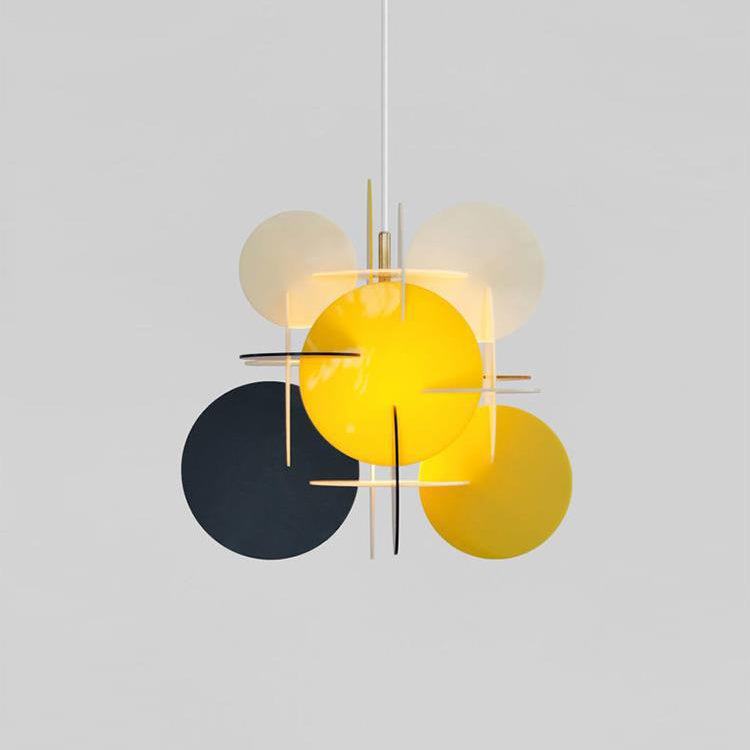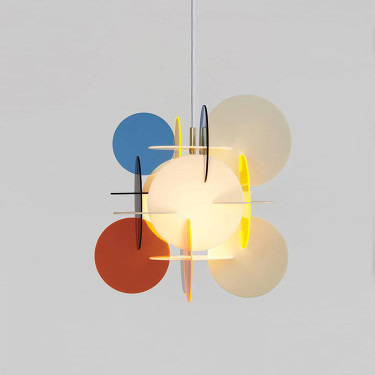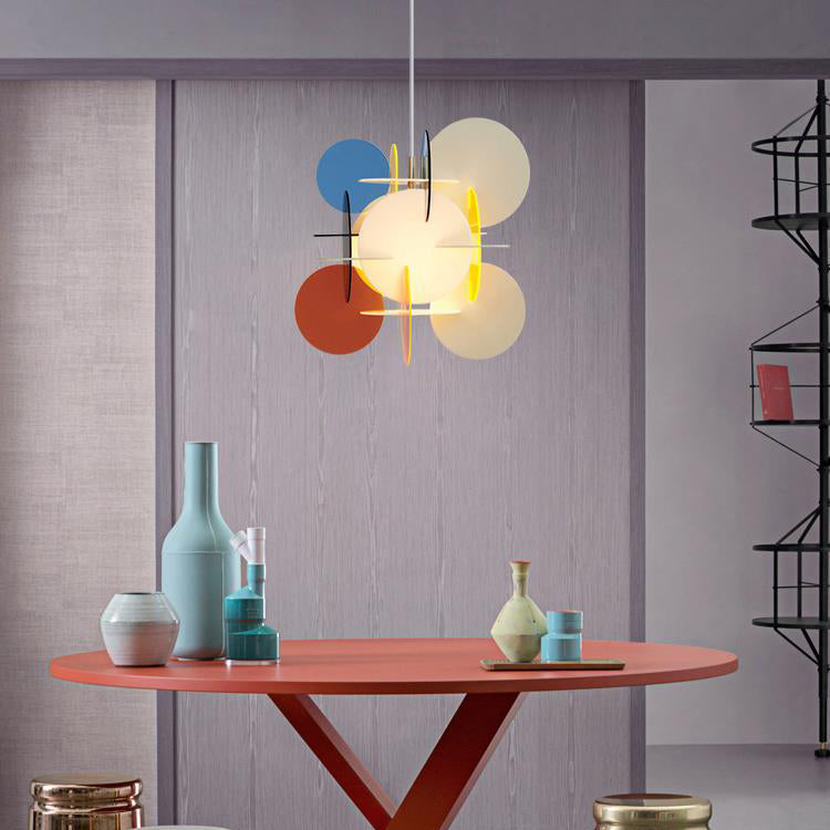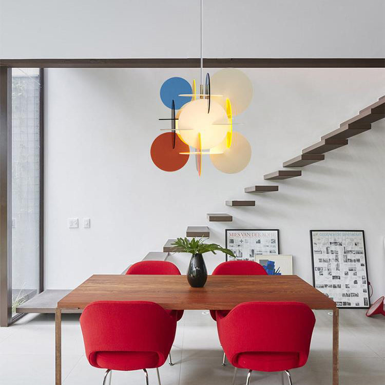 Contemporary Scandinavian Macaron Acrylic Round Sheet Splicing 1-Light Pendant Light For Dining Room