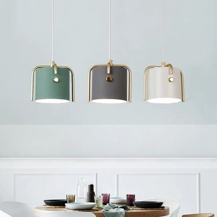 Contemporary Scandinavian Macaron Cylinder Iron 1-Light Pendant Light For Bedroom
