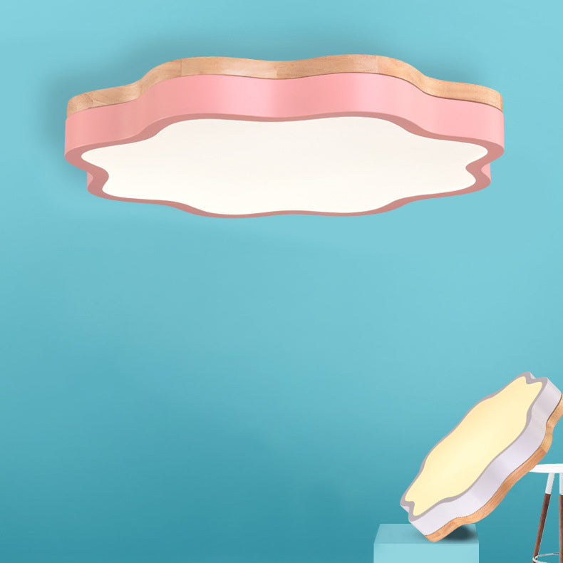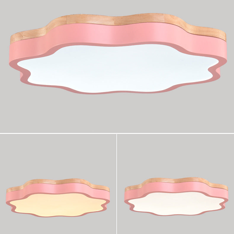 Contemporary Scandinavian Macaron Flower Iron Acrylic LED Flush Mount Ceiling Light For Living Room