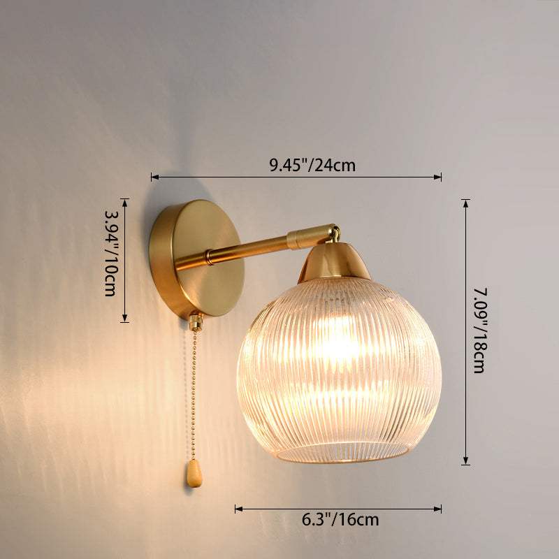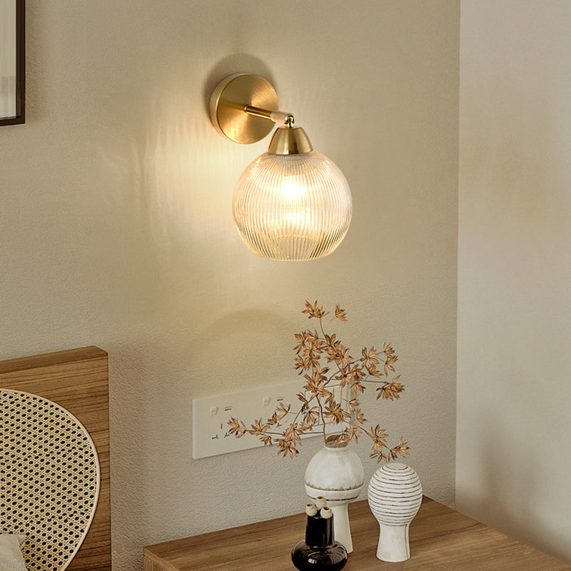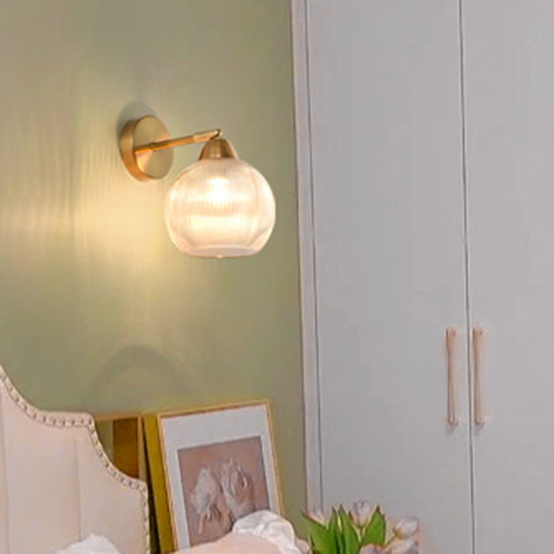 Contemporary Scandinavian Magic Bean Wave Pleat Round Glass Hardware 1-Light Wall Sconce Lamp For Living Room
