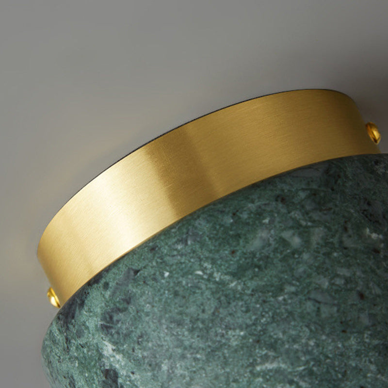 Featuring a natural marble cylinder base and soft-glow lighting, this 1-light Scandinavian ceiling fixture combines metal accents with a smooth round silhouette in white and green. Perfect for entryways or living rooms, it delivers gentle illumination with modern elegance and organic texture.