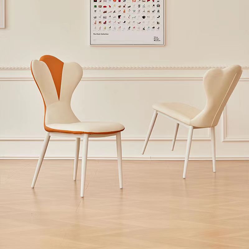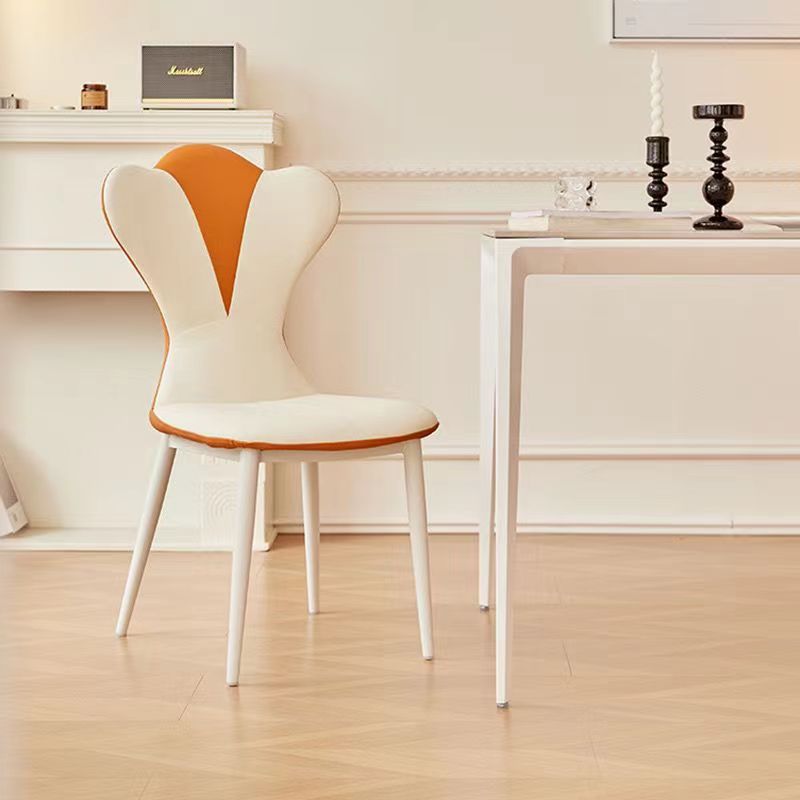 Contemporary Scandinavian Microfiber Leather Carbon Steel Vanity Stool Curved Backrest For Bedroom