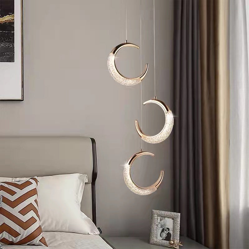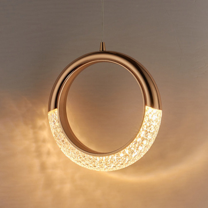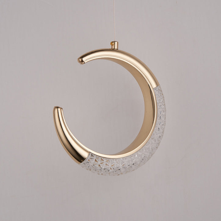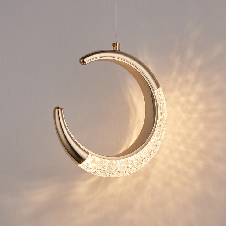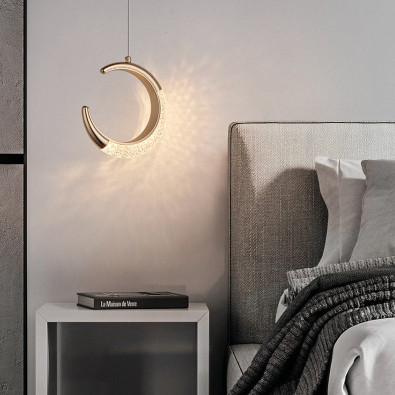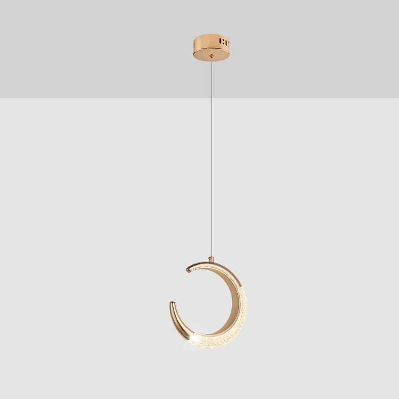 Contemporary Scandinavian Moon Circle Alloy PMMA LED Pendant Light For Bedroom