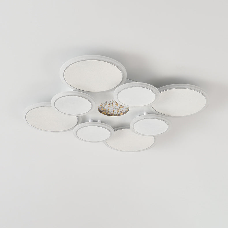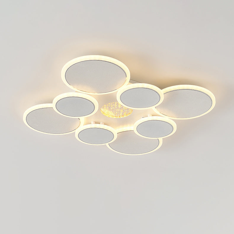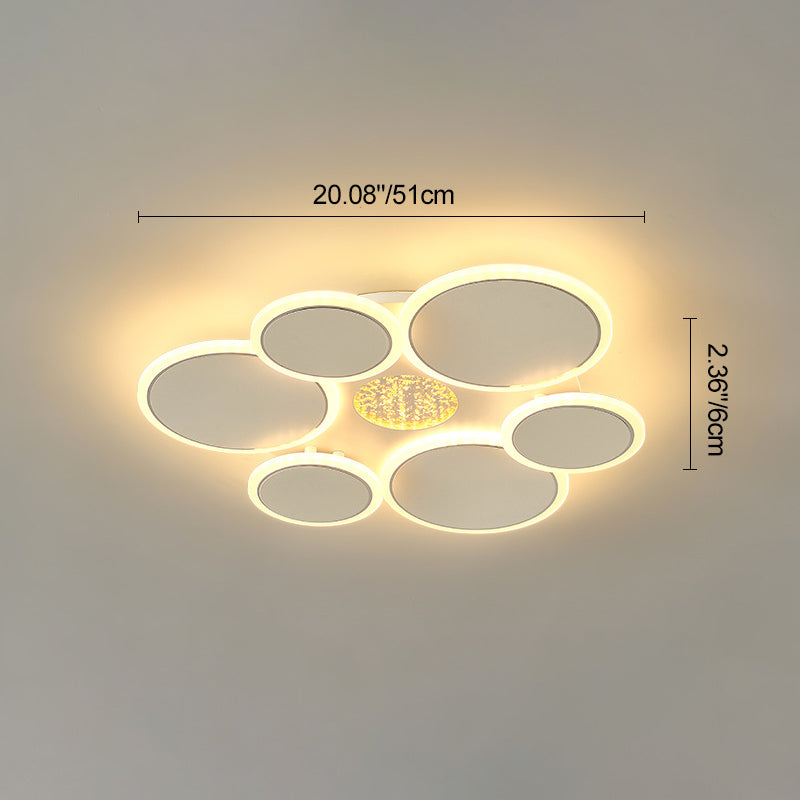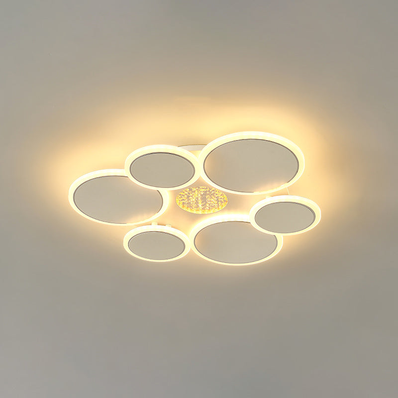 Contemporary Scandinavian Multiple Circle Iron Acrylic LED Semi-Flush Mount Ceiling Light For Bedroom
