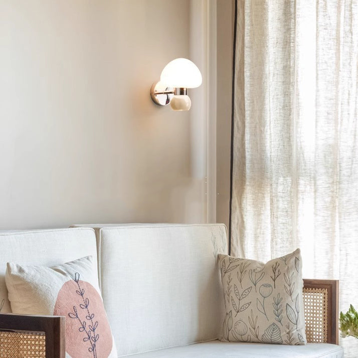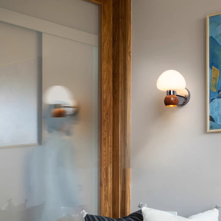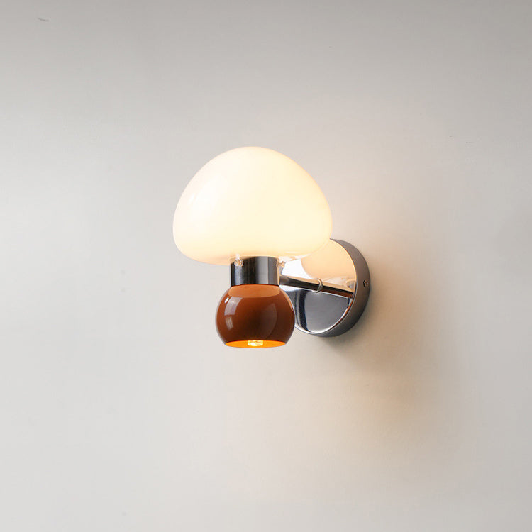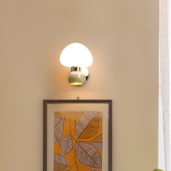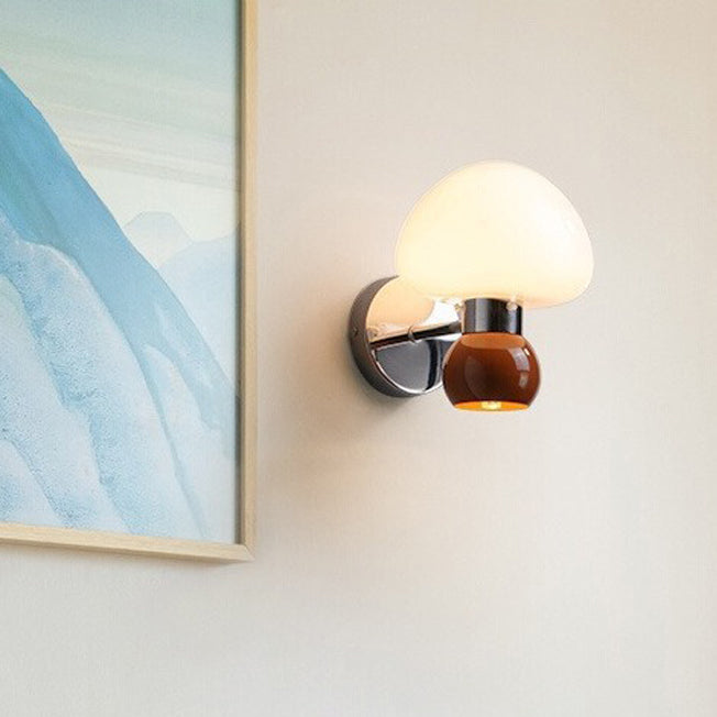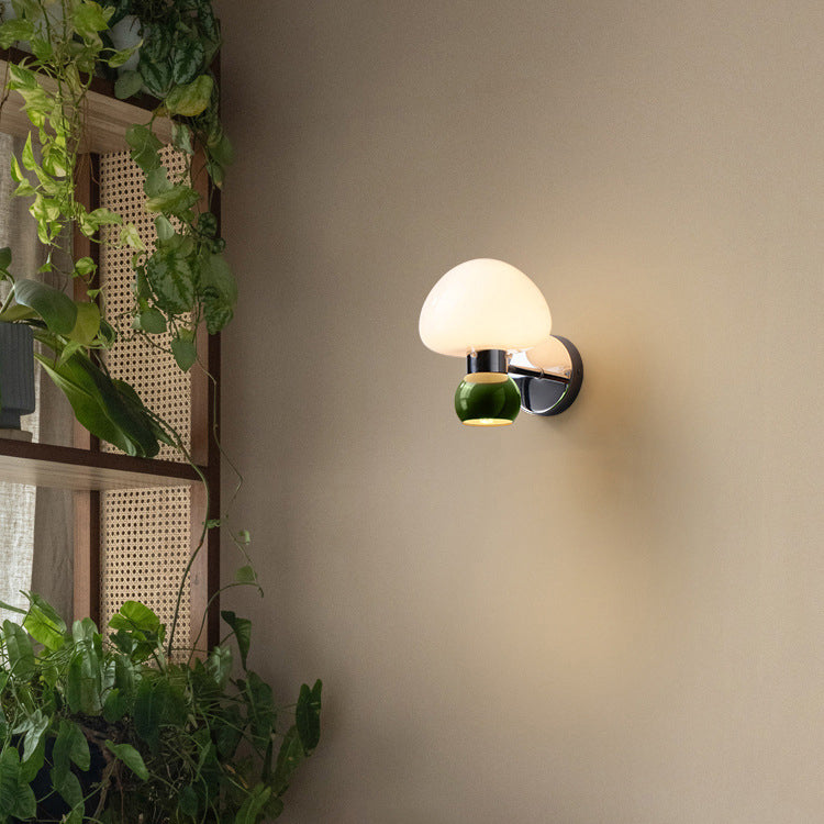 Contemporary Scandinavian Mushroom Ball Iron PE 1-Light Wall Sconce Lamp For Bedroom