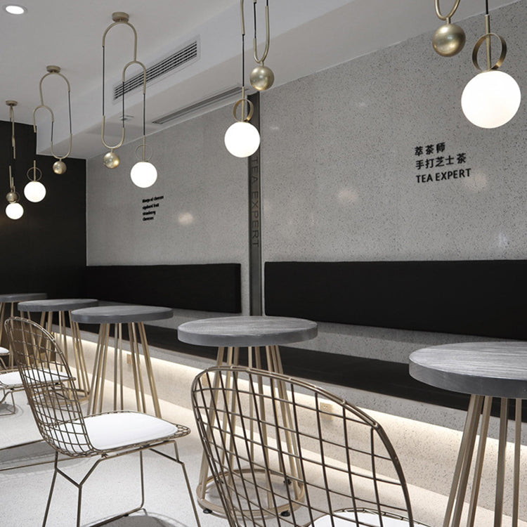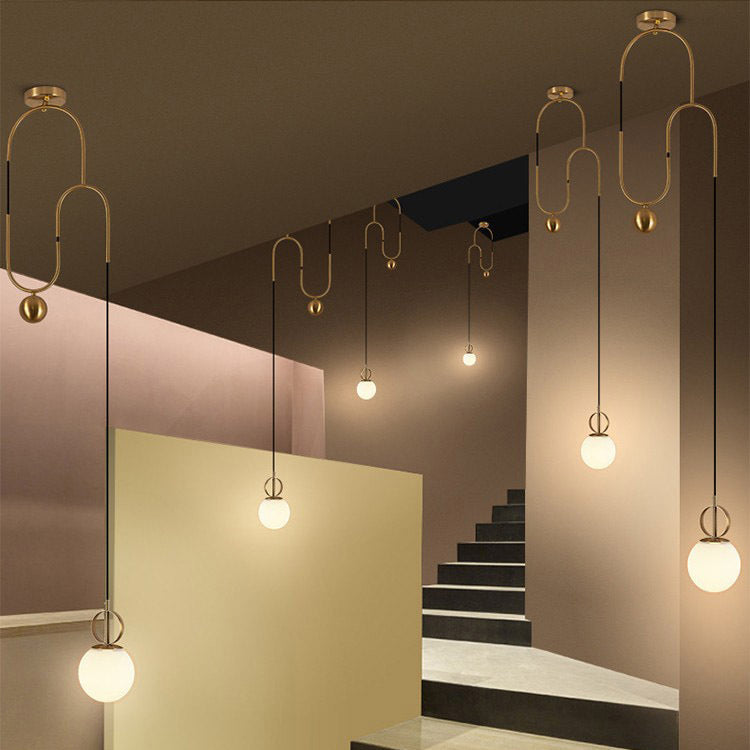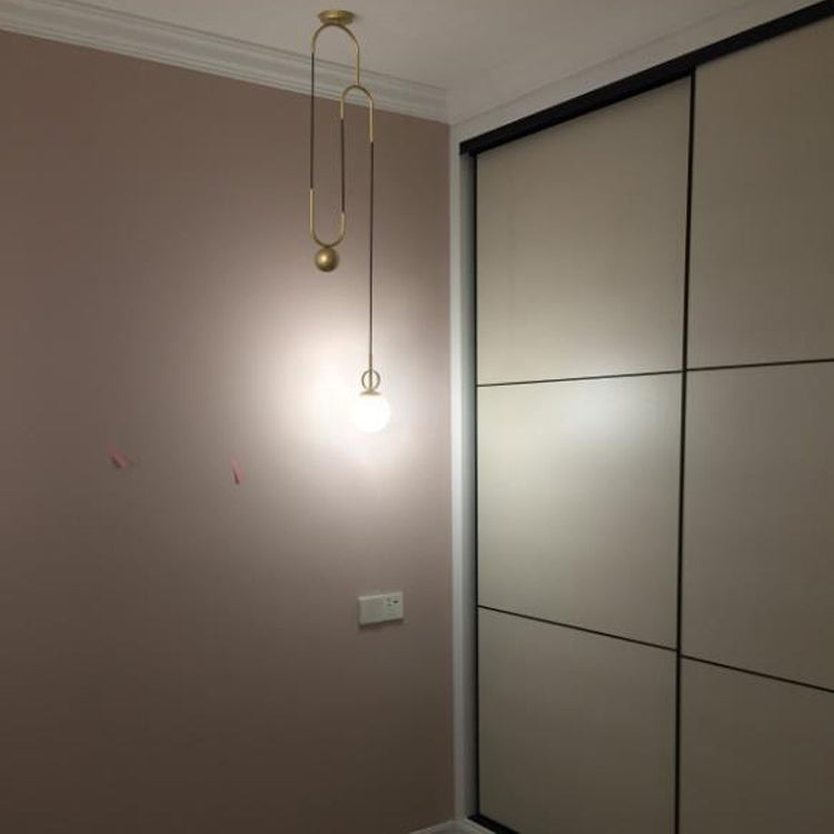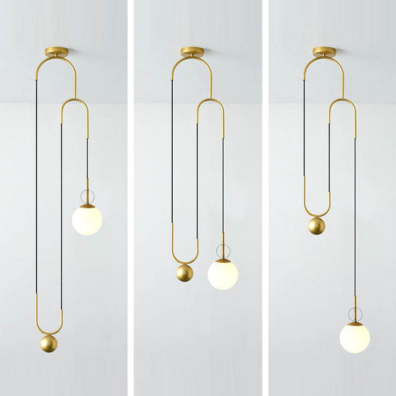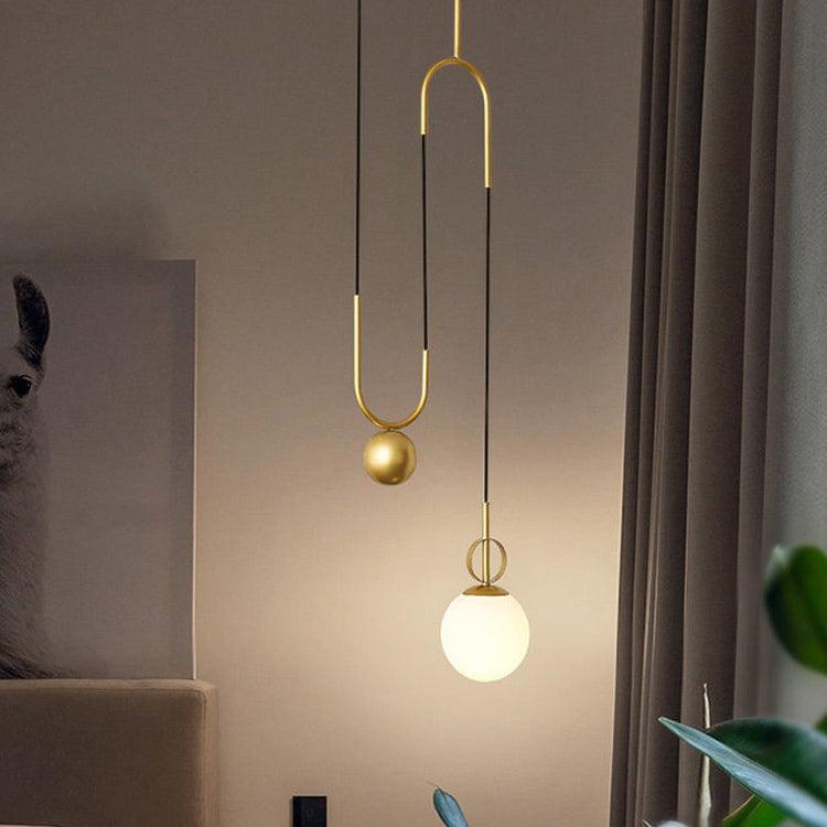 Contemporary Scandinavian Orb Combination Curved Iron Glass 1-Light Pendant Light For Bedroom
