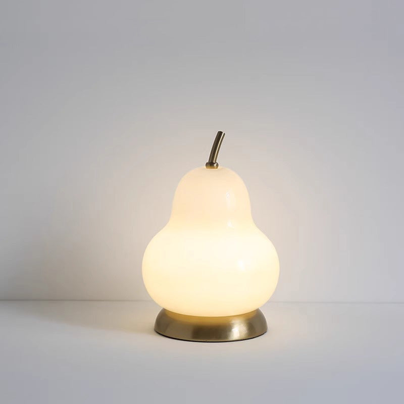 Contemporary Scandinavian Pear Glass Shade Iron USB Rechargeable LED Table Lamp For Bedroom