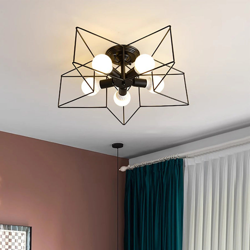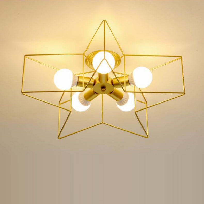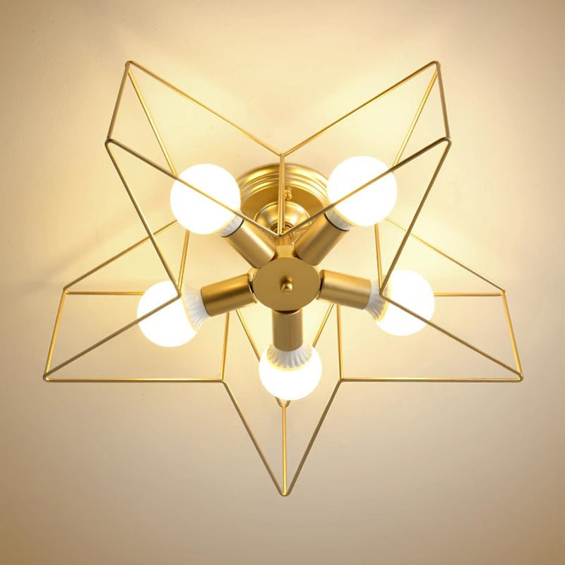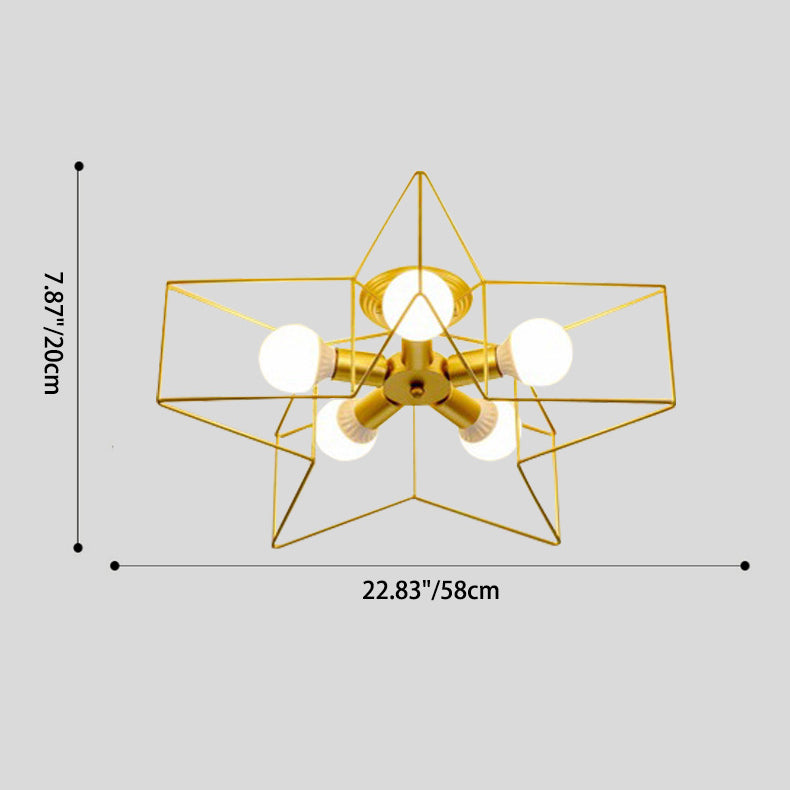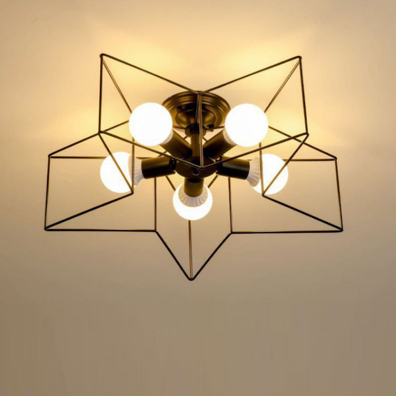 Contemporary Scandinavian Pentagram Iron 5-Light Semi-Flush Mount Lighting For Living Room