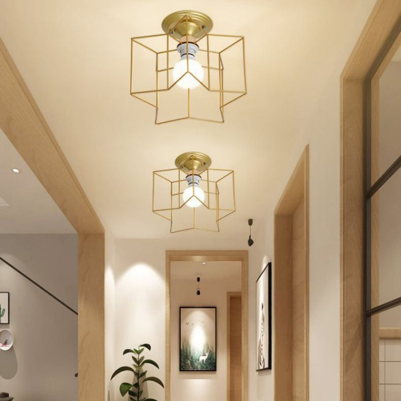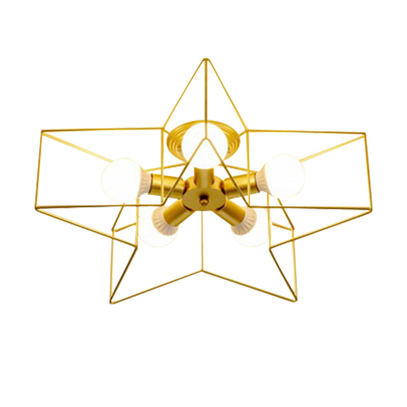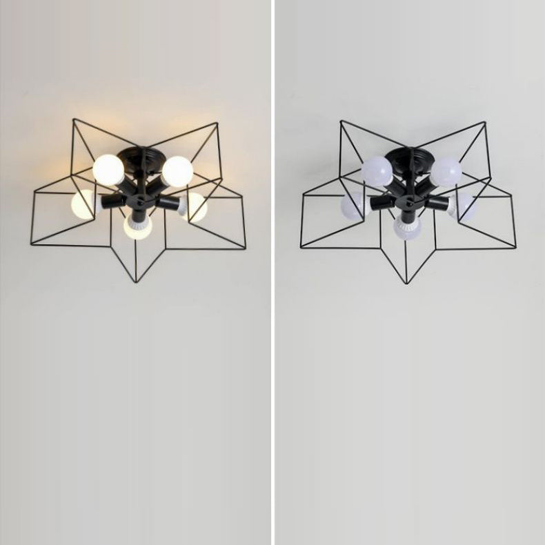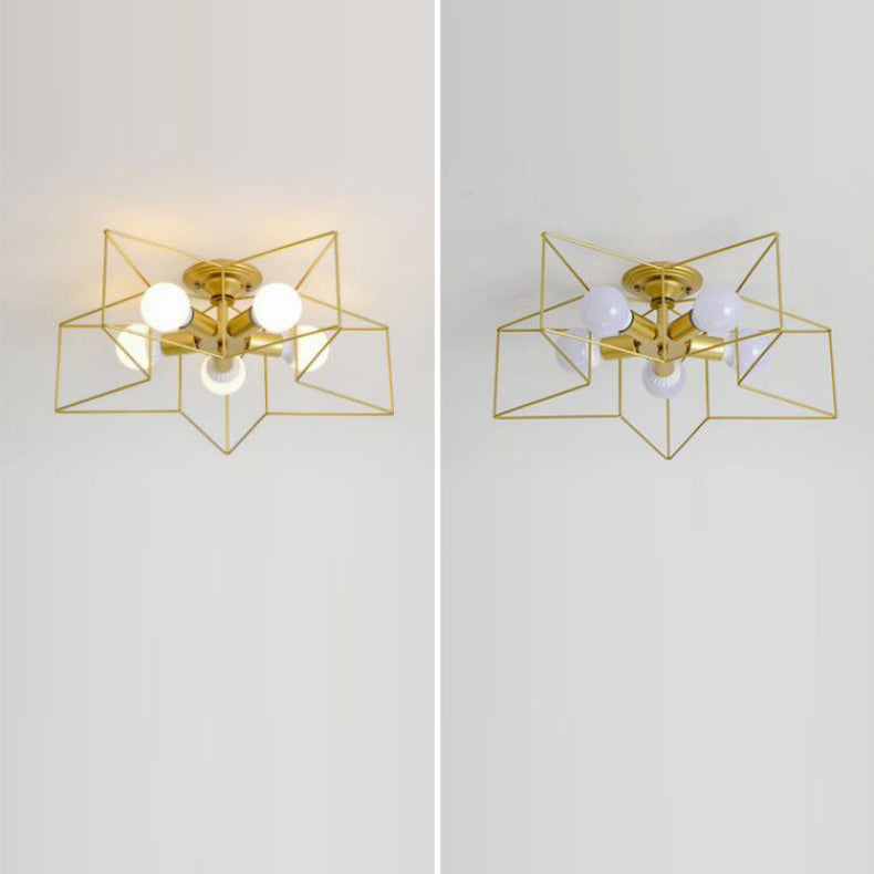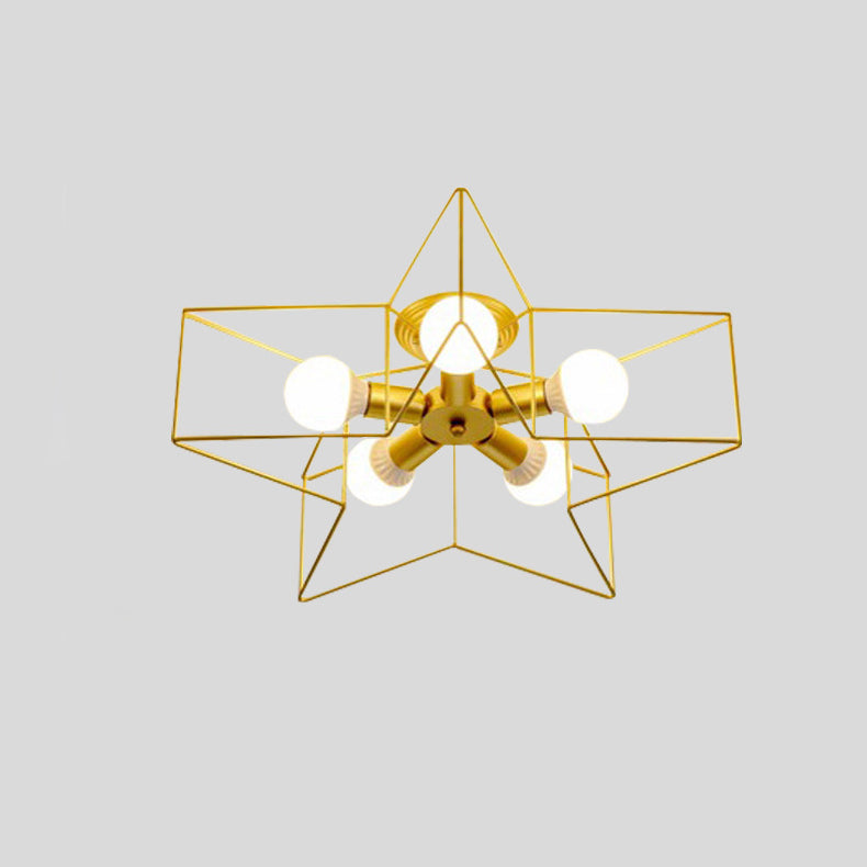 Contemporary Scandinavian Pentagram Iron 5-Light Semi-Flush Mount Lighting For Living Room