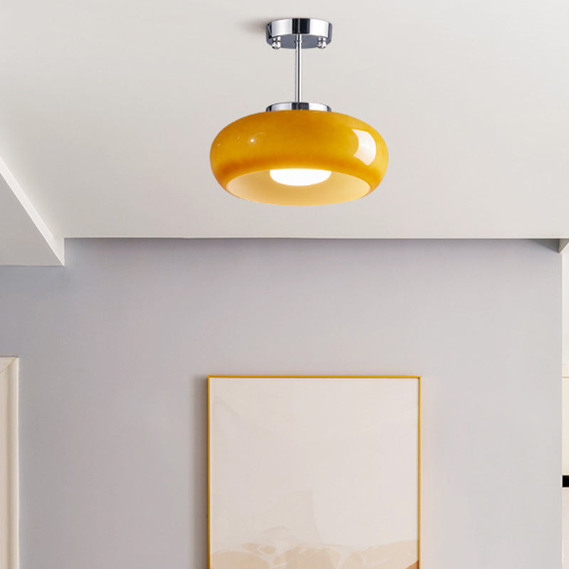 Contemporary Scandinavian Persimmon Oval Disc Base Iron Glass 1-Light Pendant Light For Living Room