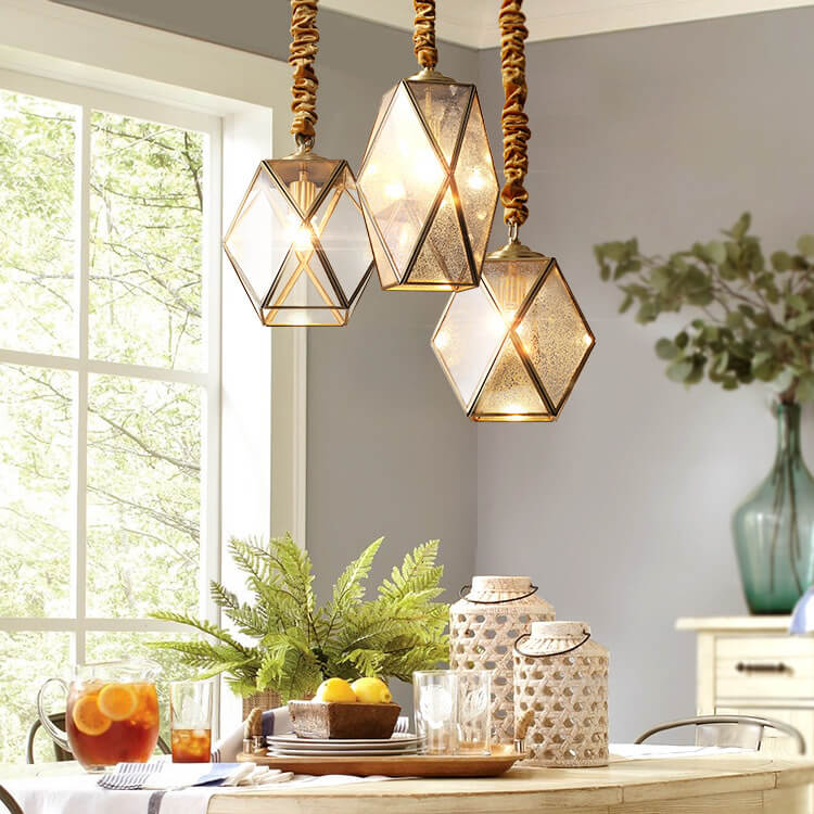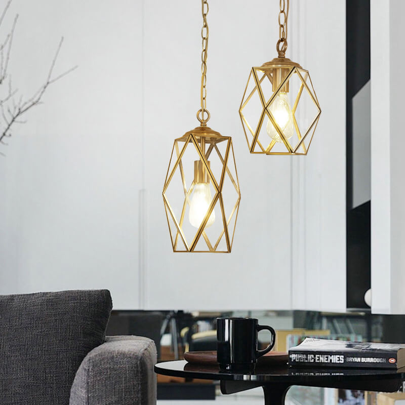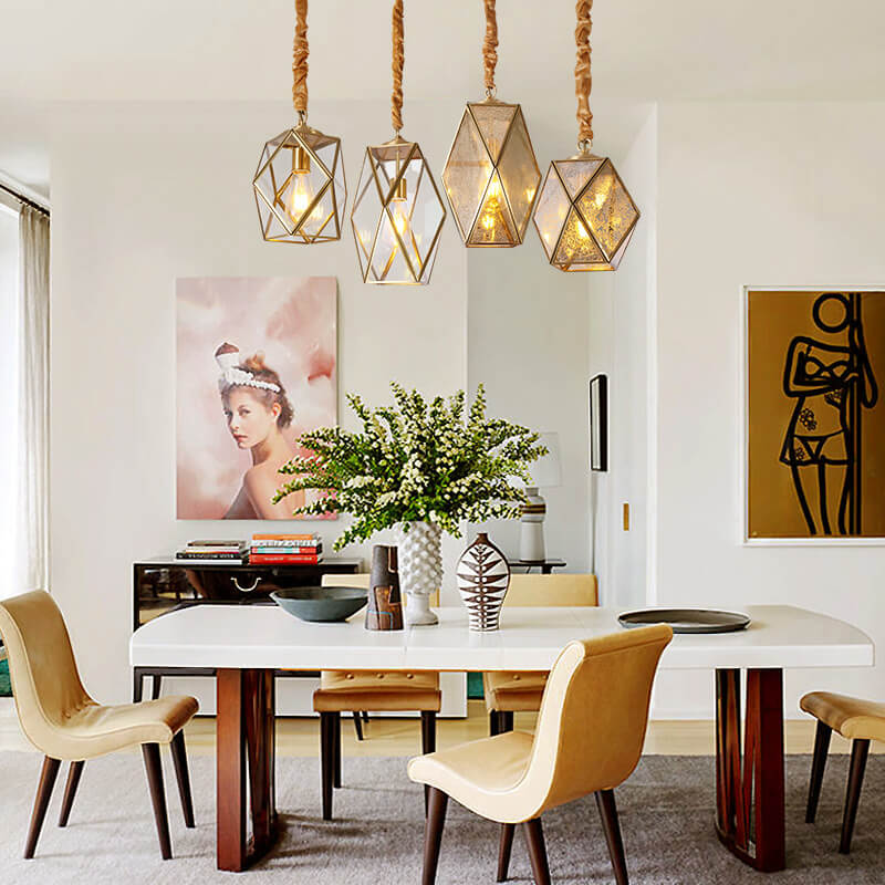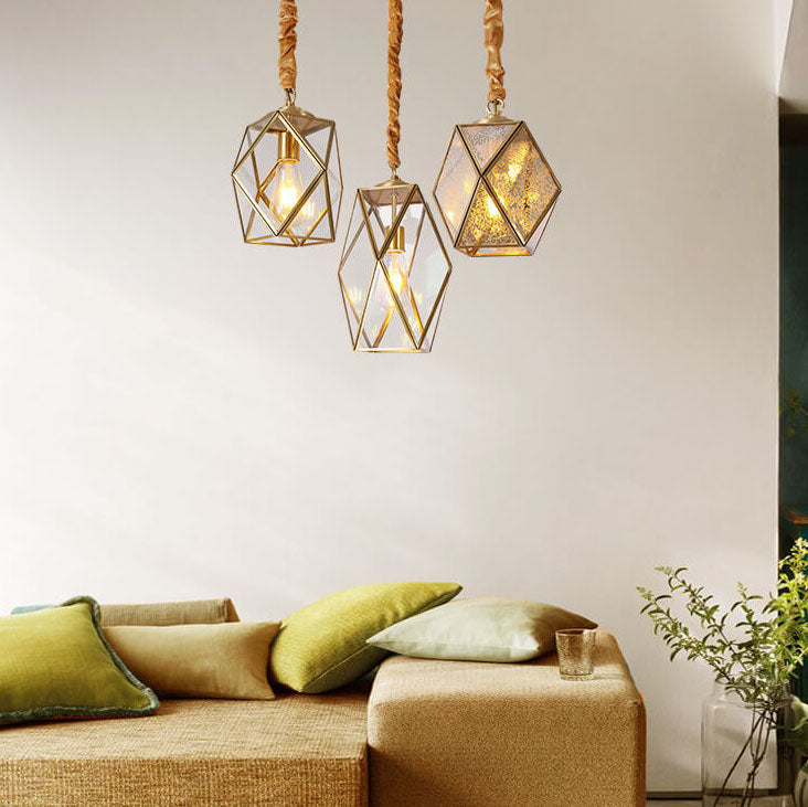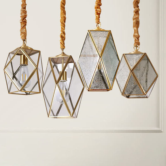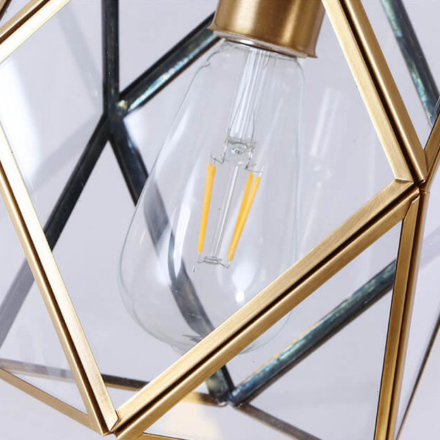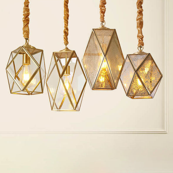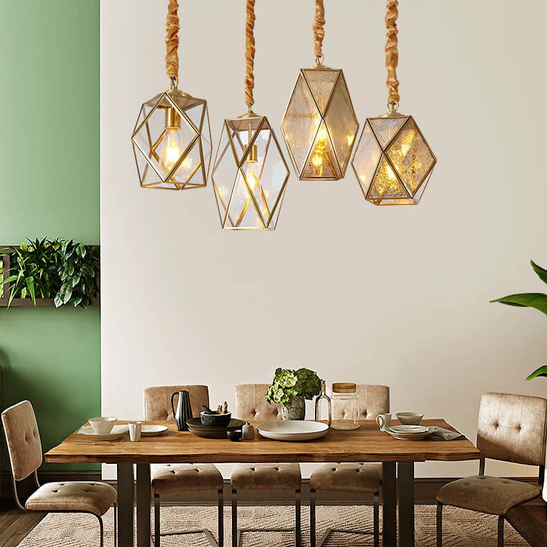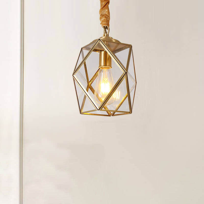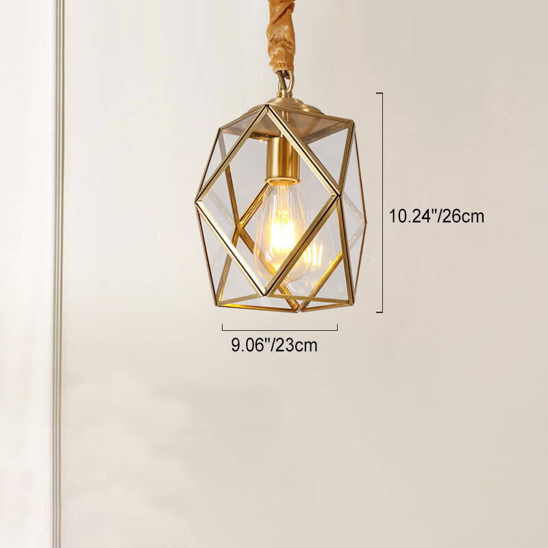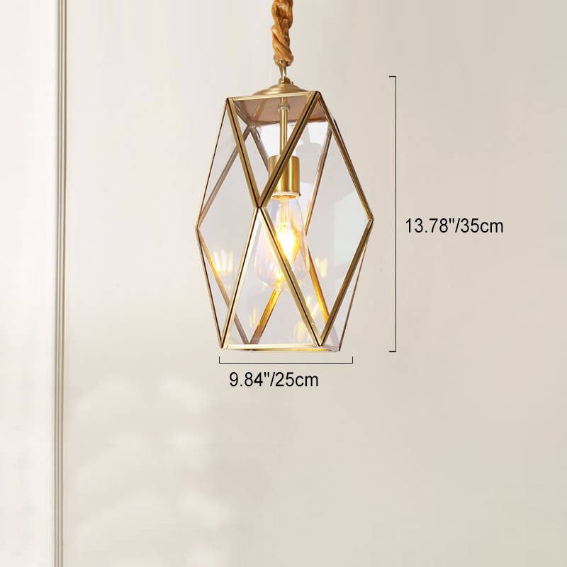 Contemporary Scandinavian Polygonal All Copper Iron Glass 1-Light Pendant Light For Living Room