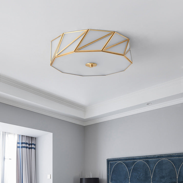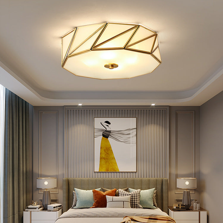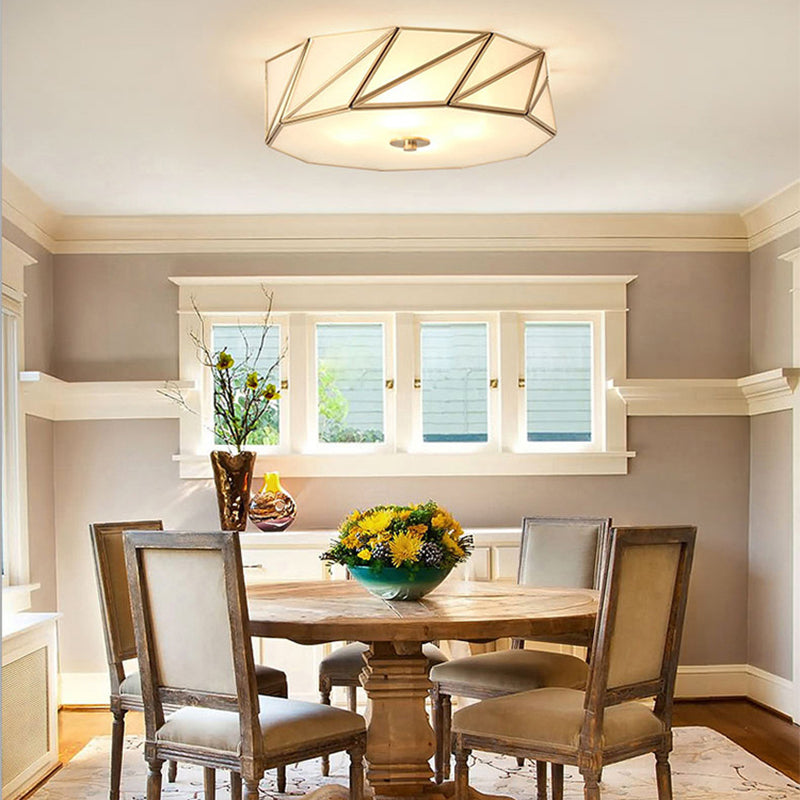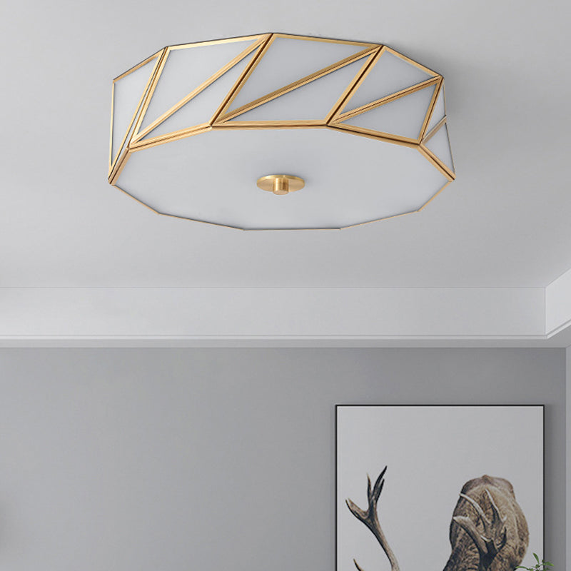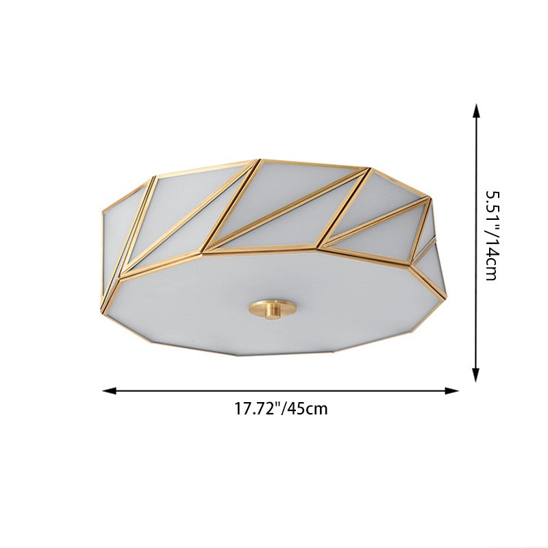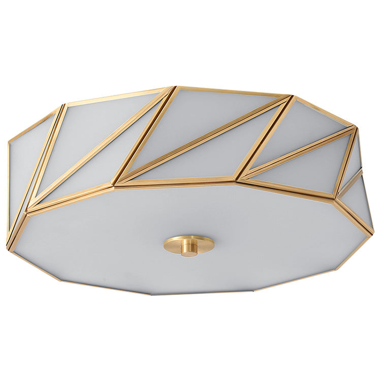 Contemporary Scandinavian Quadrilateral Polygonal Glass Copper 4-Light Flush Mount Ceiling Light For Living Room