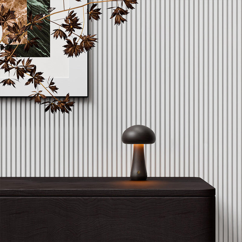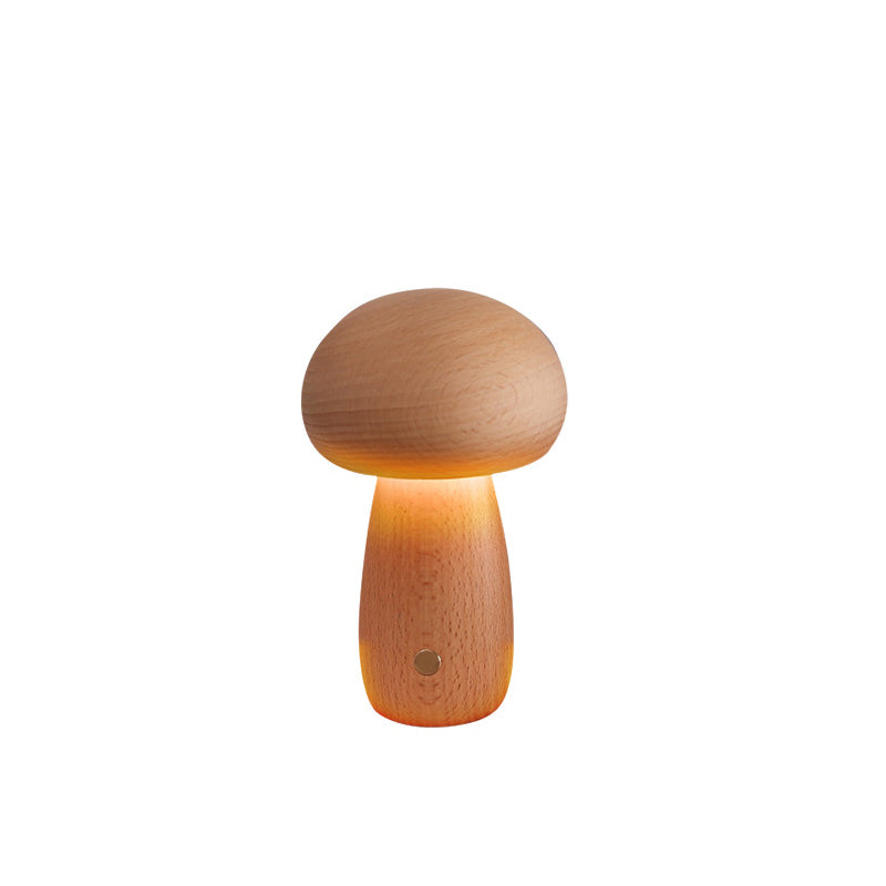 Contemporary Scandinavian Rechargeable Solid Wood Mushroom LED Table Lamp Night Light For Bedside