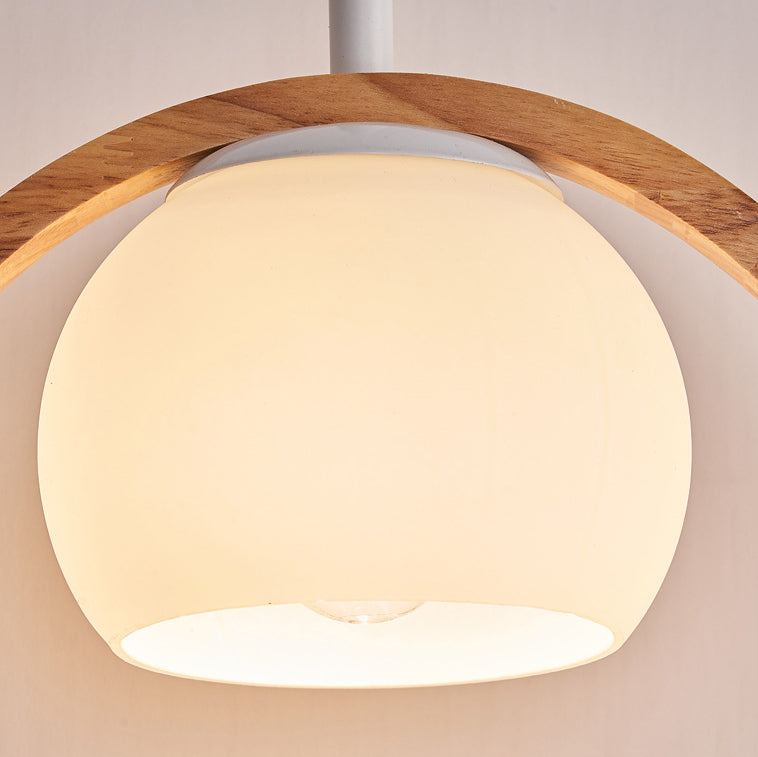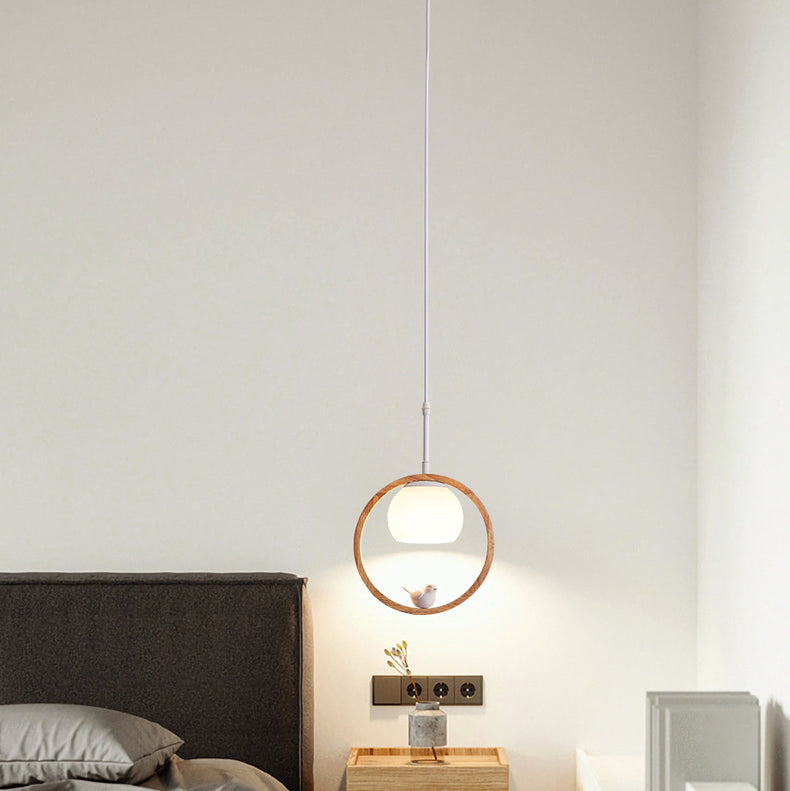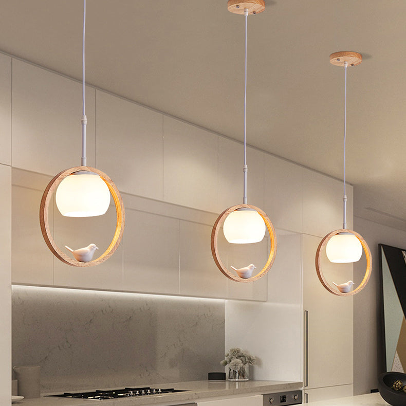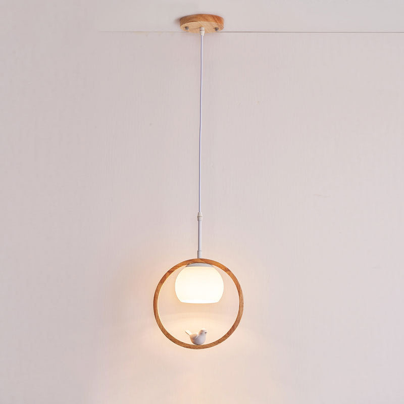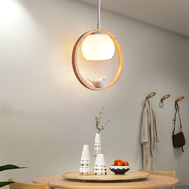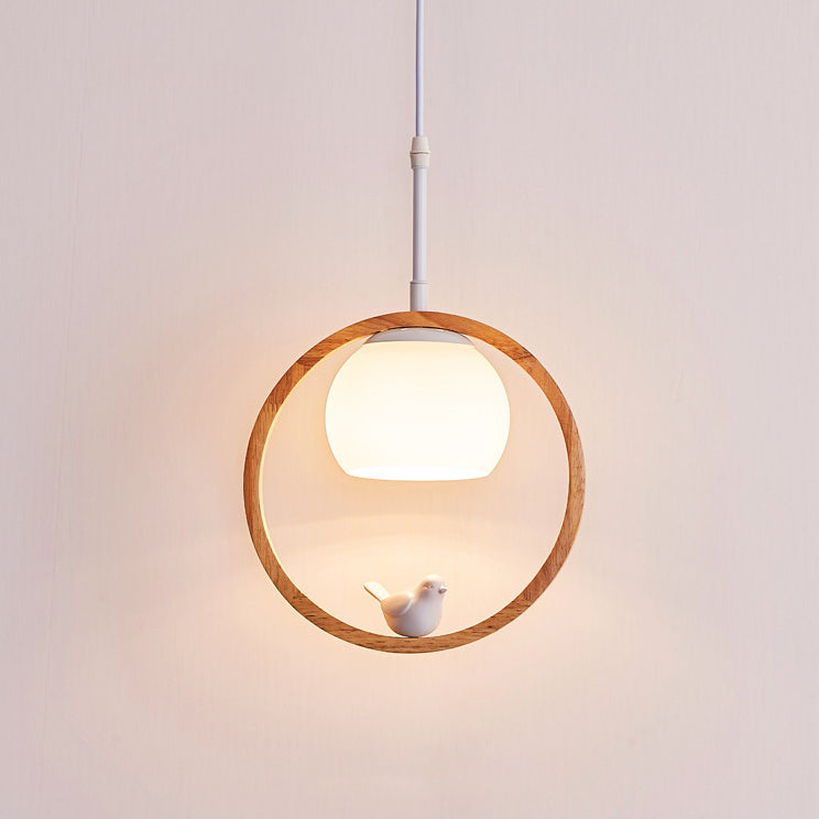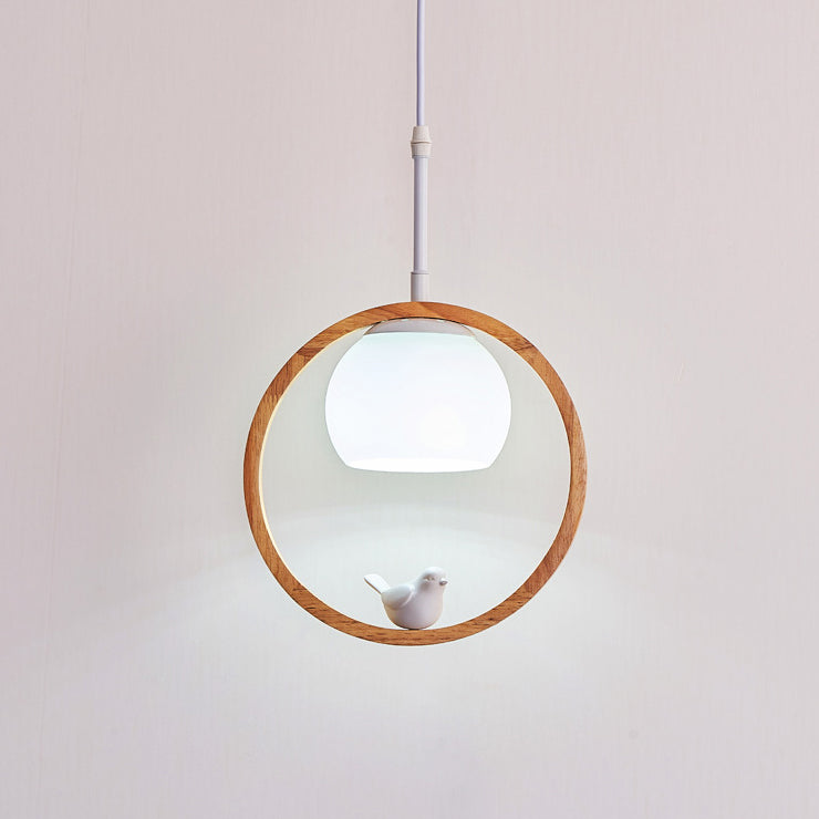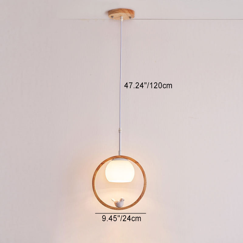 Contemporary Scandinavian Round Bird Wood Glass 1-Light Pendant Light For Living Room