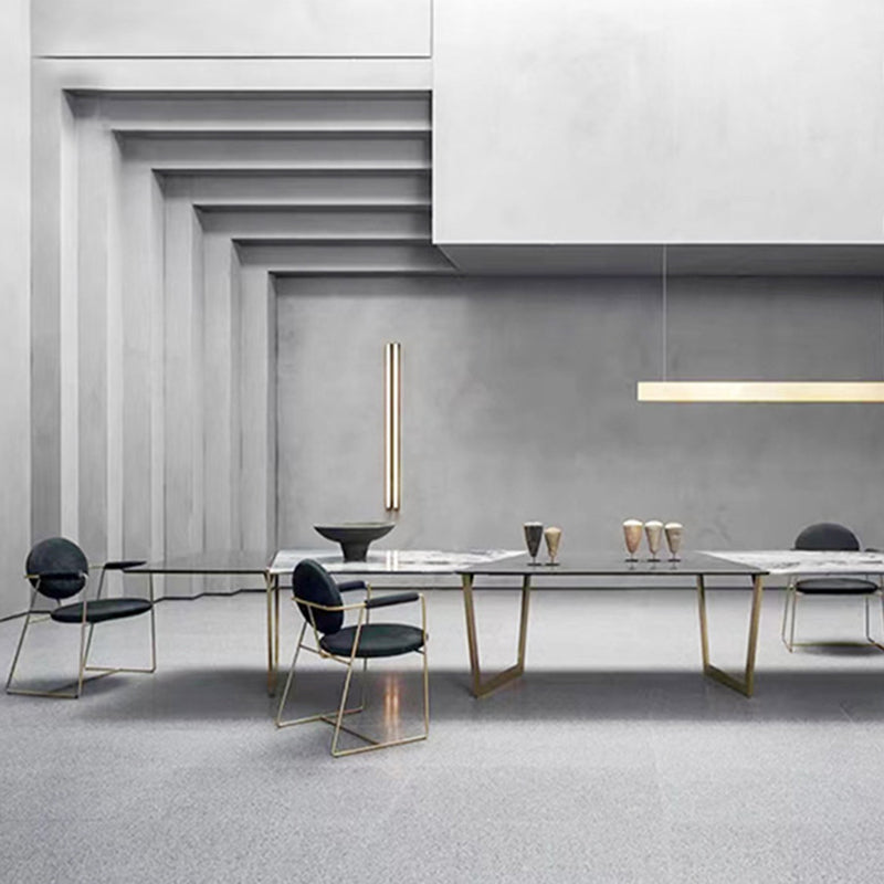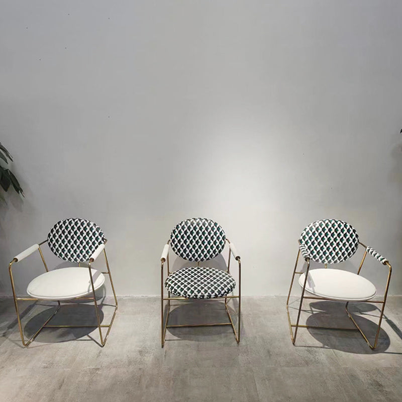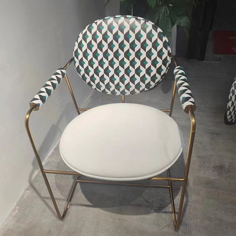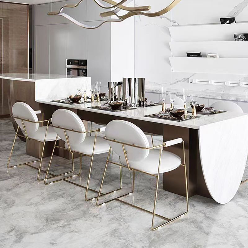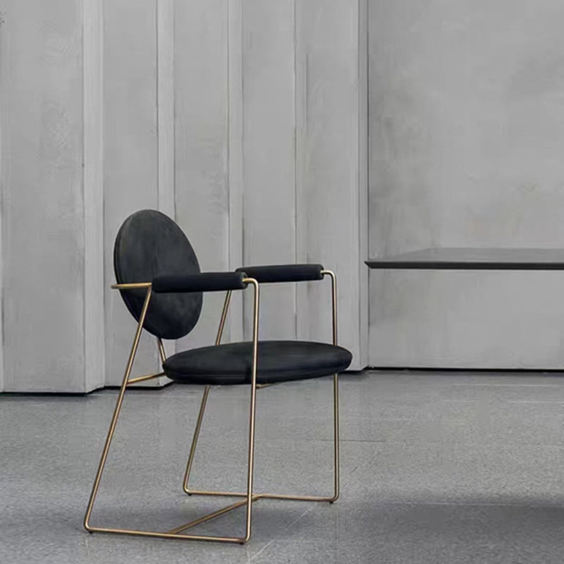 Contemporary Scandinavian Round Cushion Microfiber Leather Stainless Steel Dining Chair Backrest Armrest For Dining Room