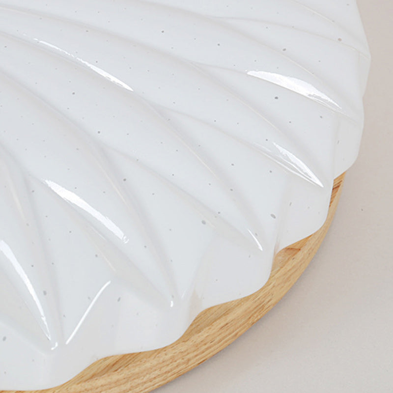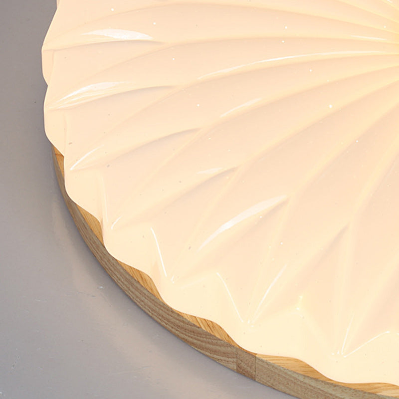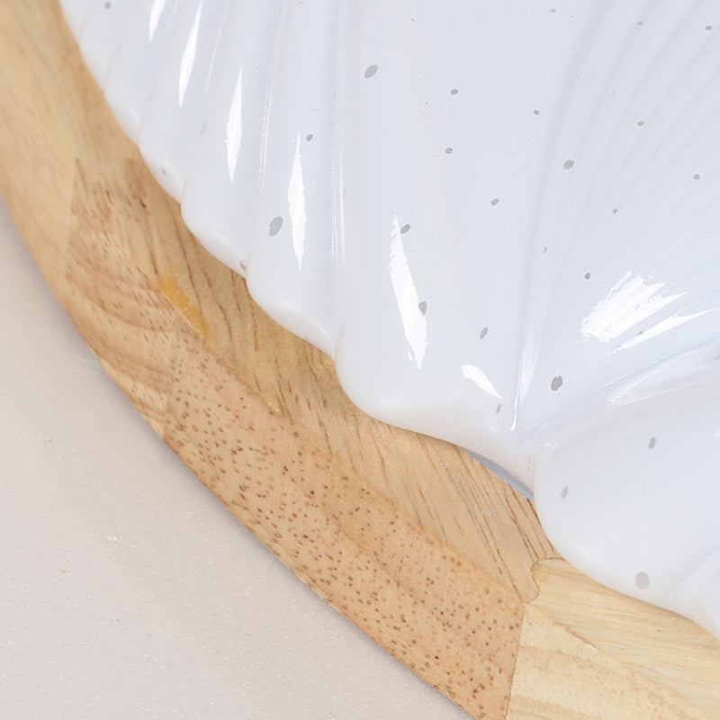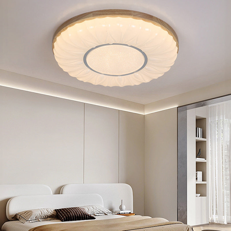 Contemporary Scandinavian Round Dome Iron PS Wood LED Flush Mount Ceiling Light For Bedroom